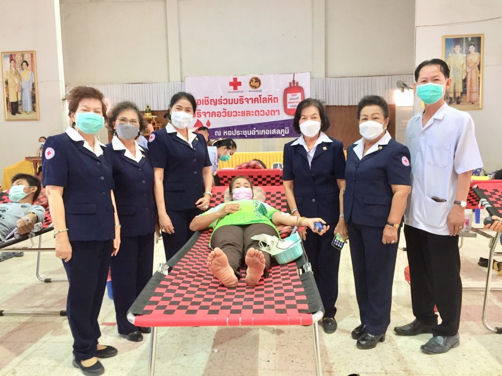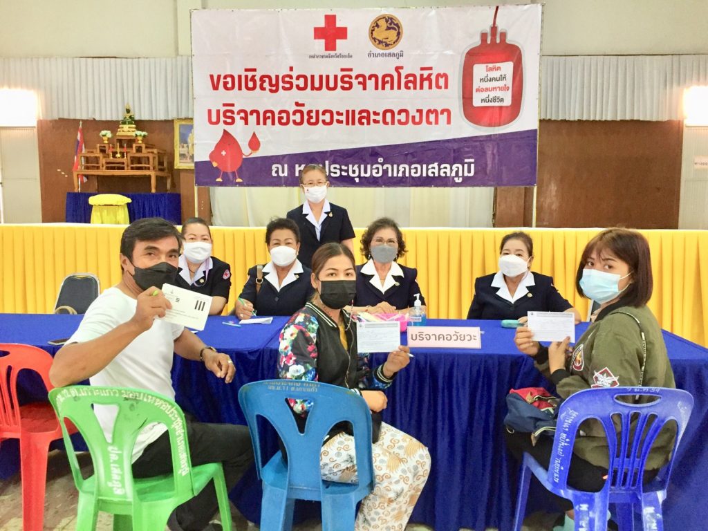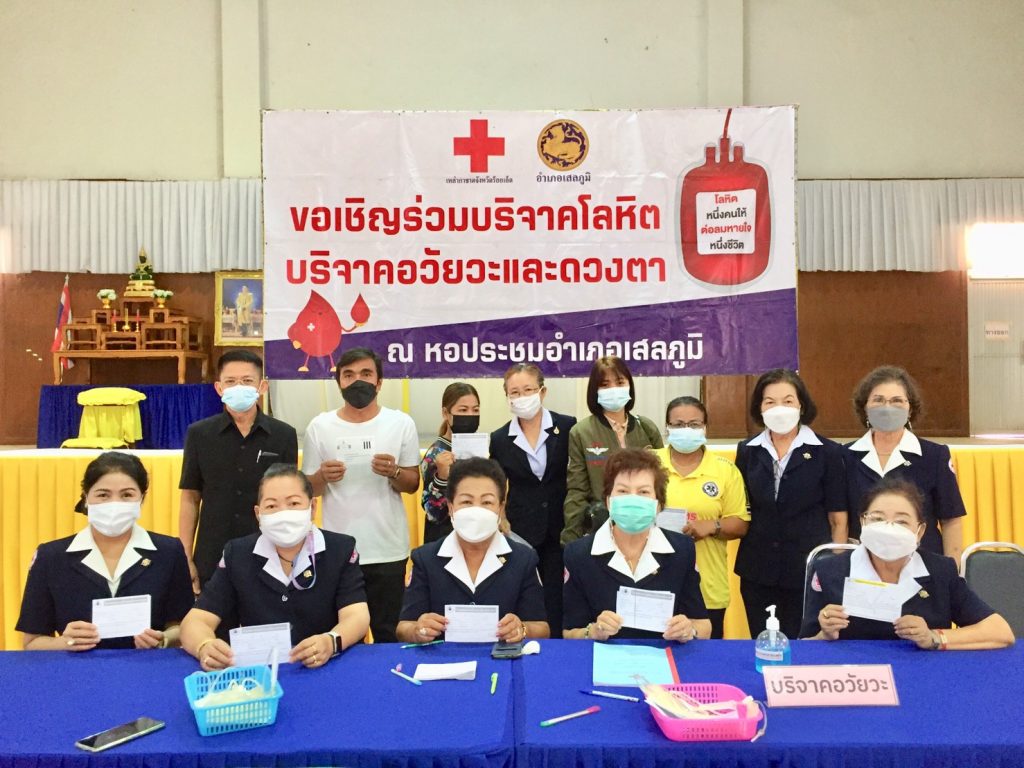 นายอำเภอเสลภูมิ พร้อมด้วยหัวหน้าส่วนราชการ ปลัดอำเภอ เจ้าหน้าที่ และประชาชนชาวอำเภอเสลภูมิ มาร่วมบริจาคโลหิตในครั้งนี้
