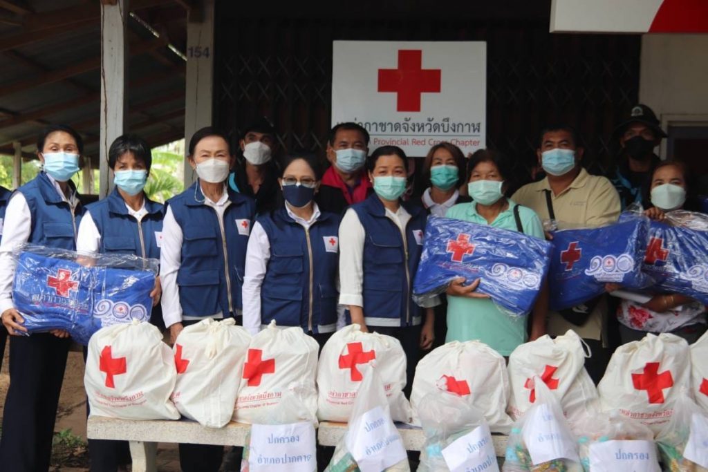 เหล่ากาชาดจังหวัดบึงกาฬได้มอบถุงยังชีพ พร้อมเครื่องอุปโภคบริโภคที่จำเป็นต่อการดำรงชีวิต ให้กับผู้ประสบเหตุวาตภัย