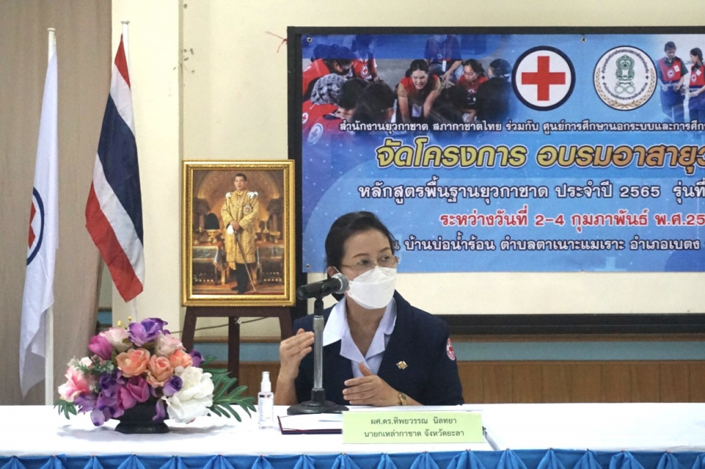 วันที่ 2 กุมภาพันธ์ 2565 ผศ.ดร ทิพยวรรณ นิลทยา นายกเหล่ากาชาดจังหวัดยะลา เป็นประธานพิธีเปิดการอบรมอาสายุวกาชาด หลักสูตรพื้นฐานยุวกาชาด ประจำปี 2565 รุ่นที่ 5668 โดยเหล่ากาชาดจังหวัดยะลาบรูณาการร่วมกับศูนย์การศึกษานอกระบบและการศึกษาตามอัธยาศัยจังหวัดยะลาในการจัดอบรม และได้ส่งเสริมเผยแพร่อุดมการณ์หลักการกาชาด วิทยากรบรรยายโดย นางสาวแสงอรุณ สูคีรี สมาชิกเหล่ากาชาดจังหวัดยะลา และ นายอภิหนึ่ง เลขะสม กรรมการเหล่ากาชาดจังหวัดยะลา โดยมี นางชลิตา บารา กรรมการเหล่ากาชาดจังหวัดยะลา ,นางมุกดา ยังอภัย ณ สงขลา นายกกิ่งกาชาดอำเภอเบตง และ กรรมการ/สมาชิกกิ่งกาชาดอำเภอเบตง ร่วมพิธีเปิดในครั้งนี้ ณ บ้านบ่อน้ำรอน ตำบลตาเนาะแมเราะ อำเภอเบตง จังหวัดยะลา