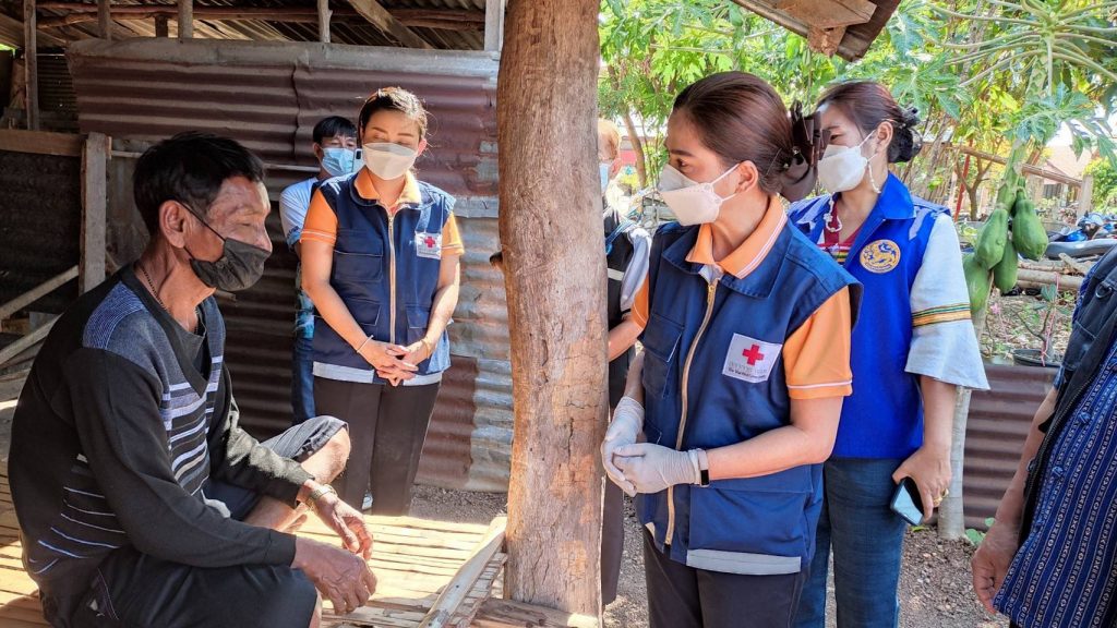 นางกาญจนี รุจนเสรี นายกเหล่ากาชาดจังหวัดนครพพนม มอบหมายให้นางศุทธิกานต์ วงศ์สถิตจิรกาล รองนายกเหล่ากาชาดจังหวัดนครพนม พร้อมด้วยคณะกรรมการและเจ้าหน้าที่เหล่ากาชาดจังหวัดนครพนม บูรณาการการทำงานร่วมกับอำเภอศรีสงคราม ลงพื้นที่