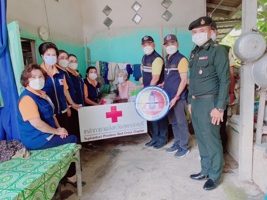 วันที่ 2 มีนาคม 2565 นางนภัสสร สุวรรณประทีป นายกเหล่ากาชาดจังหวัดสุพรรณบุรี นางณัฐนันท์ ทองคำ รองนายกเหล่ากาชาดจังหวัด นางสุภาวดี บุญส่ง ผู้ช่วยนายกเหล่ากาชาดจังหวัด พร้อมด้วยที่ปรึกษา และกรรมการเหล่ากาชาดจังหวัด ลงพื้นที่เยี่ยมให้กำลังใจผู้ยากไร้ ราย นางใคร่ ศรีจันทร์ โดย เหล่ากาชาดจังหวัดสุพรรณบุรี มอบเครื่องอุปโภค – บริโภค จำนวน 1 ชุด น้ำดื่ม ขนาด 600 มิลลิลิตร จำนวน 1 แพ็ค ณ บ้านเลขที่ 321 ม.2 ต.ศรีประจันต์ อ.ศรีประจันต์ จ.สุพรรณบุรี