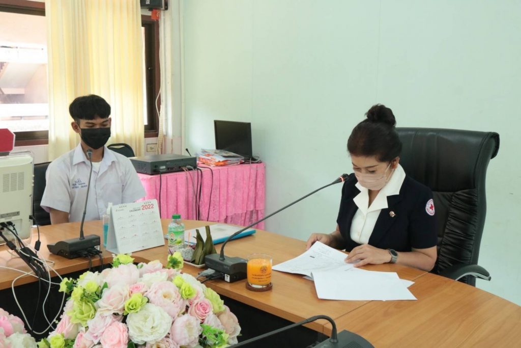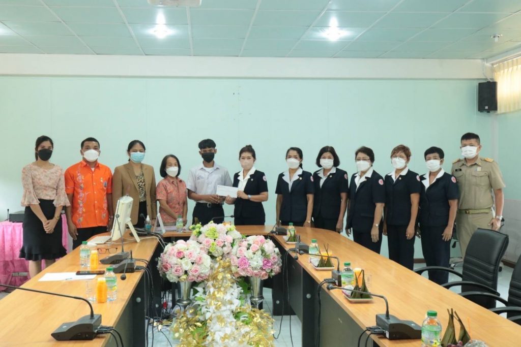 วันที่ 3 กุมภาพันธ์ 2565 นางอุรสา จินโต นายกเหล่ากาชาดจังหวัดสุราษฎร์ธานี ประธานแม่บ้านมหาดไทยจังหวัดสุราษฎร์ธานี พร้อมด้วย