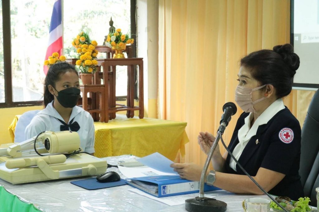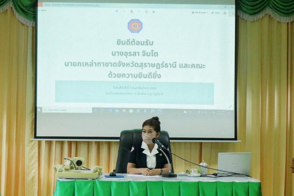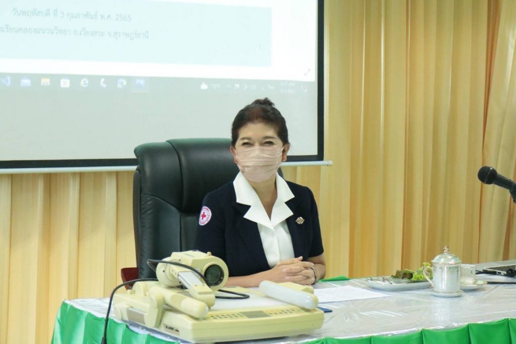 วันที่ 3 กุมภาพันธ์ 2565 นางอุรสา จินโต นายกเหล่ากาชาดจังหวัดสุราษฎร์ธานี ประธานแม่บ้านมหาดไทยจังหวัดสุราษฎร์ธานี พร้อมด้วย