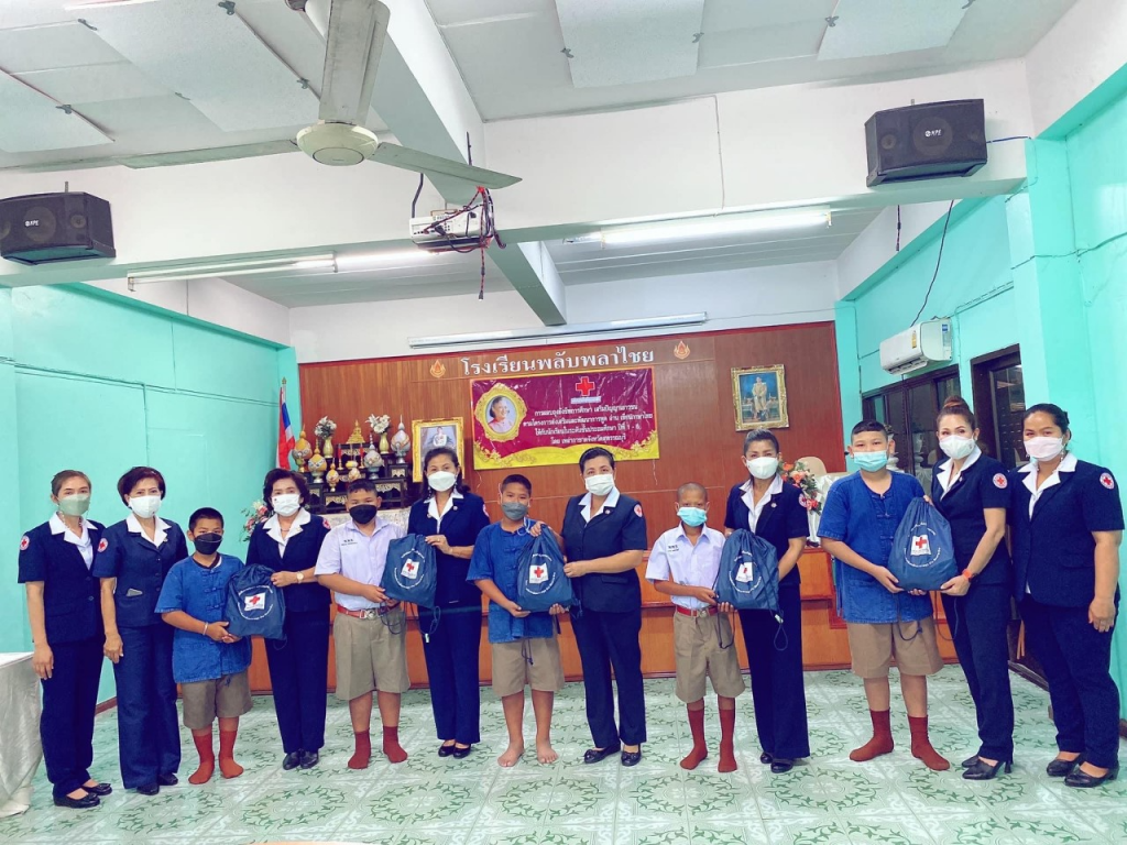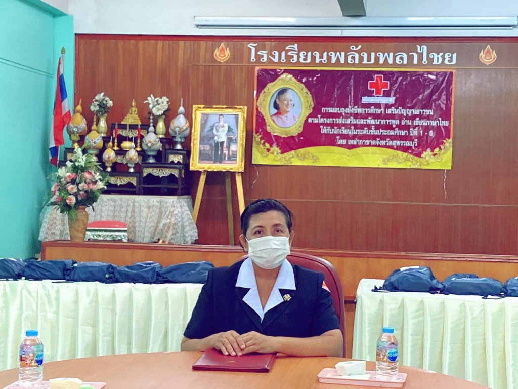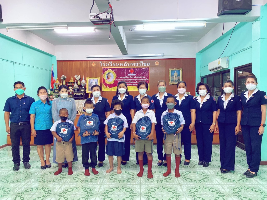 วันที่ 4 กุมภาพันธ์ 2565 นางนภัสสร สุวรรณประทีป นายกเหล่ากาชาดจังหวัดสุพรรณบุรี พร้อมด้วยกรรมการและสมาชิกเหล่ากาชาดจังหวัด ร่วมมอบถุงยังชีพการศึกษา เสริมปัญญาเยาวชน ตามโครงการส่งเสริมและพัฒนาการพูด อ่าน เขียนภาษาไทย ให้กับนักเรียนระดับประถมต้น ป.1 – ป.3 จำนวน 5 ราย และนักเรียนระดับประถมปลาย ป.4 – ป.6 จำนวน 5 ราย ณ โรงเรียนพลับพลาไชย อ.อู่ทอง จ.สุพรรณบุรี