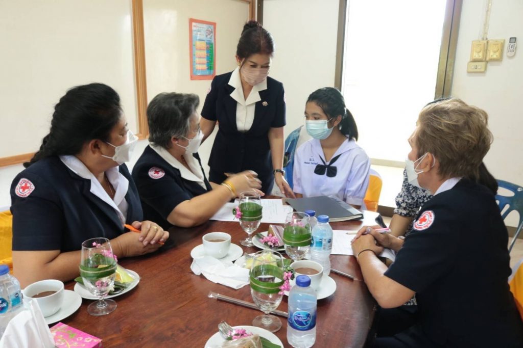 วันที่ 4 กุมภาพันธ์ 2565 นางอุรสา จินโต นายกเหล่ากาชาดจังหวัดสุราษฎร์ธานี ประธานแม่บ้านมหาดไทยจังหวัดสุราษฎร์ธานีพร้อมด้วย รองนายกเหล่ากาชาดจังหวัดสุราษฎร์ธานี/รองประธานแม่บ้านมหาดไทยจังหวัดสุราษฎร์ธานีกรรมการฯ ที่ปรึกษาฯ สมาชิกเหล่ากาชาดจังหวัดสุราษฎร์ธานีและ สมาชิกชมรมแม่บ้านมหาดไทยจังหวัดสุราษฎร์ธานีร่วมลงพื้นที่อำเภอวิภาวดี จังหวัดสุราษฎร์ธานีเพื่อเยี่ยมนักเรียนทุนในพระราชานุเคราะห์ สมเด็จพระกนิษฐาธิราชเจ้ากรมสมเด็จพระเทพรัตนราชสุดาฯ สยามบรมราชกุมารีณ โรงเรียนมัธยมวิภาวดี อำเภอวิภาวดีประจำปีการศึกษา 2564 ภาคเรียนที่ 1จำนวน 2 ราย ดังนี้