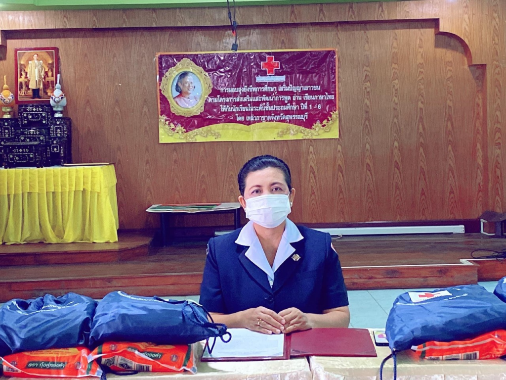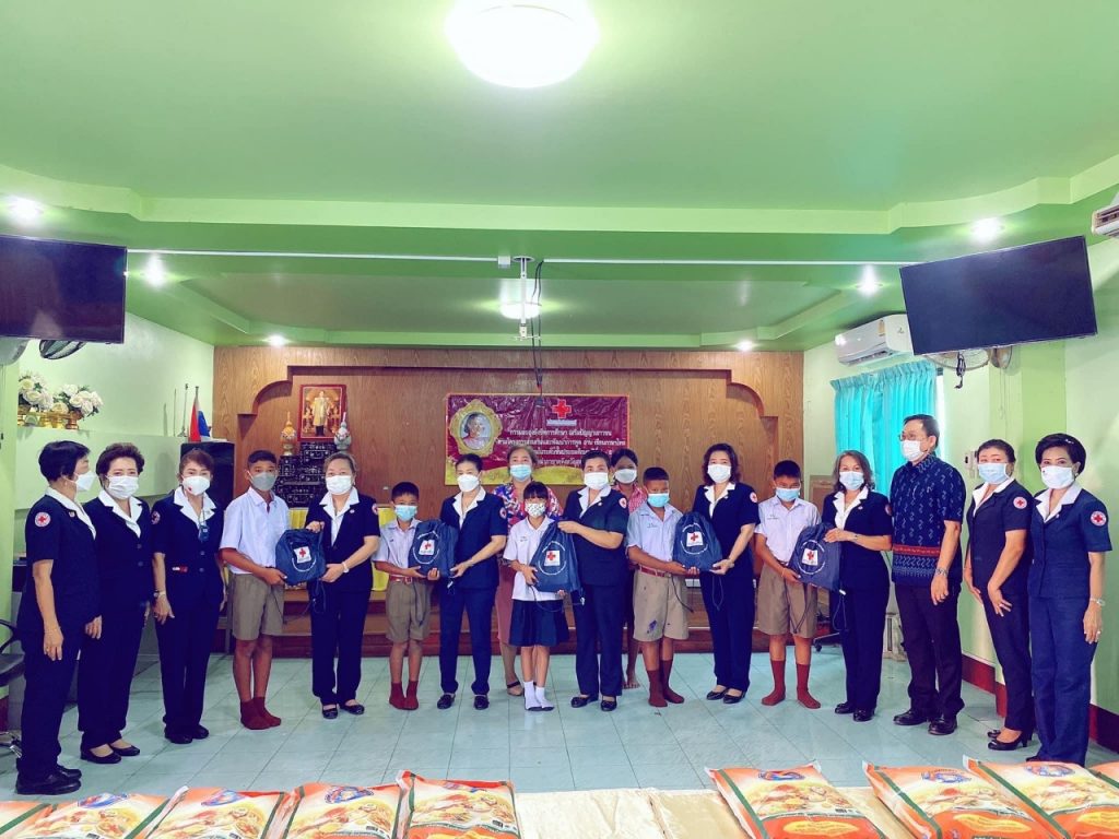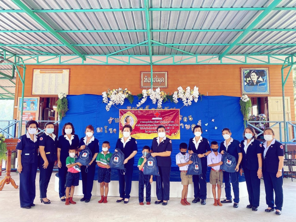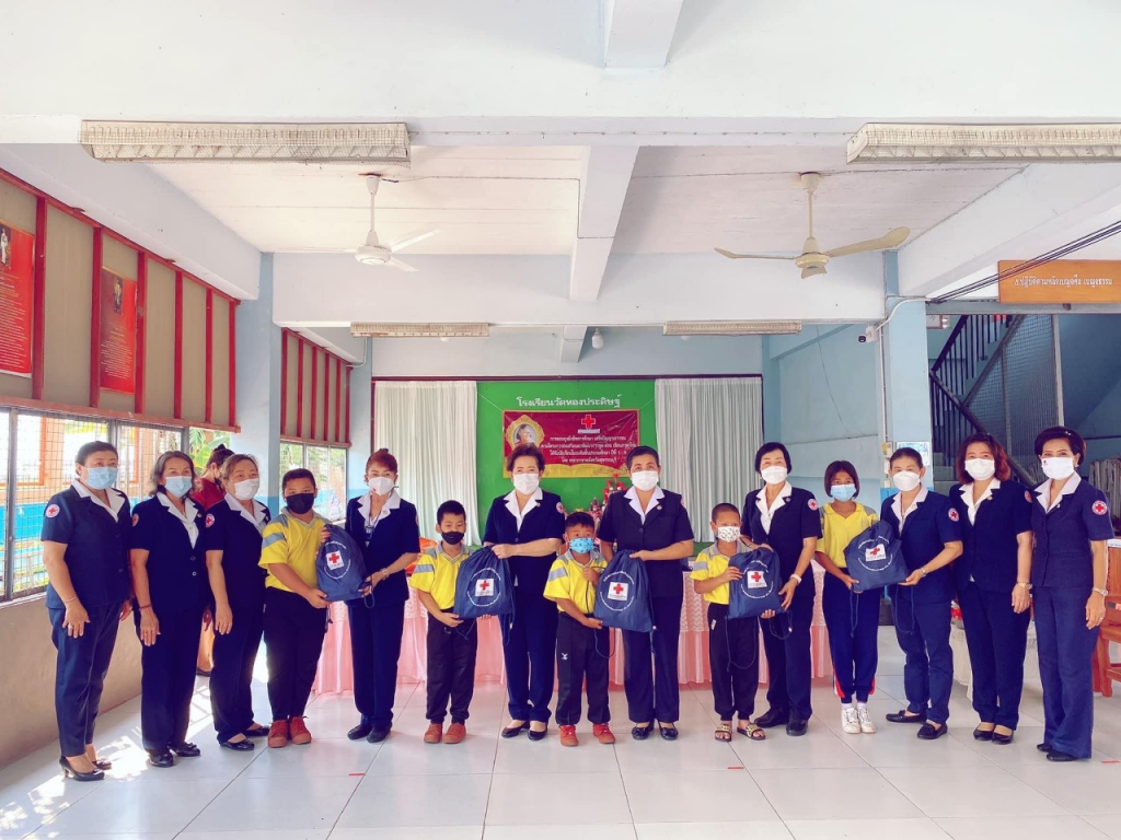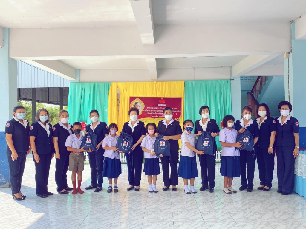 วันที่ 8 กุมภาพันธ์ 2565 นางนภัสสร สุวรรณประทีป นายกเหล่ากาชาดจังหวัดสุพรรณบุรี พร้อมด้วยที่ปรึกษา กรรมการและสมาชิกเหล่ากาชาดจังหวัด ร่วมมอบถุงยังชีพการศึกษา เสริมปัญญาเยาวชน ตามโครงการส่งเสริมและพัฒนาการพูด อ่าน เขียนภาษาไทย ให้กับนักเรียนดังนี้