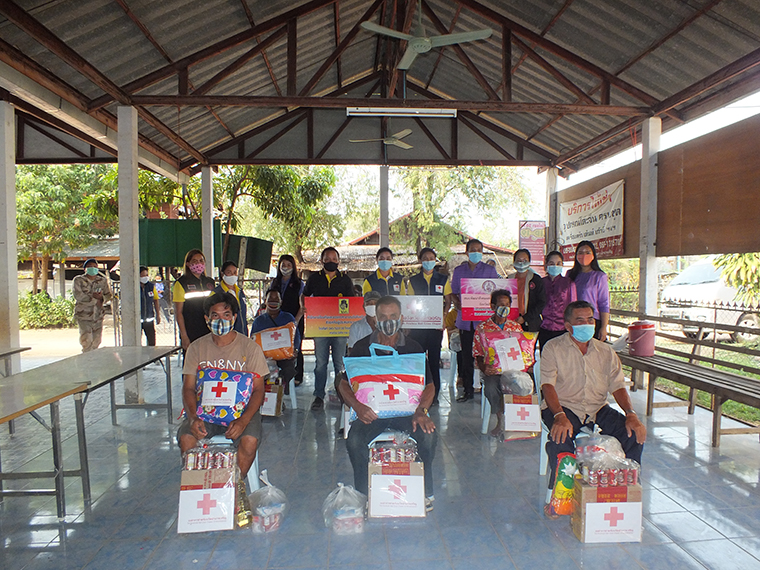 จำนวน 13 ชุด เพื่อเป็นการสร้างขวัญให้กำลังใจในเบื้องต้น และแจกจ่ายหน้ากากอนามัยให้กับผู้ประสบวาตภัยและประชาชนผู้มาร่วมงาน