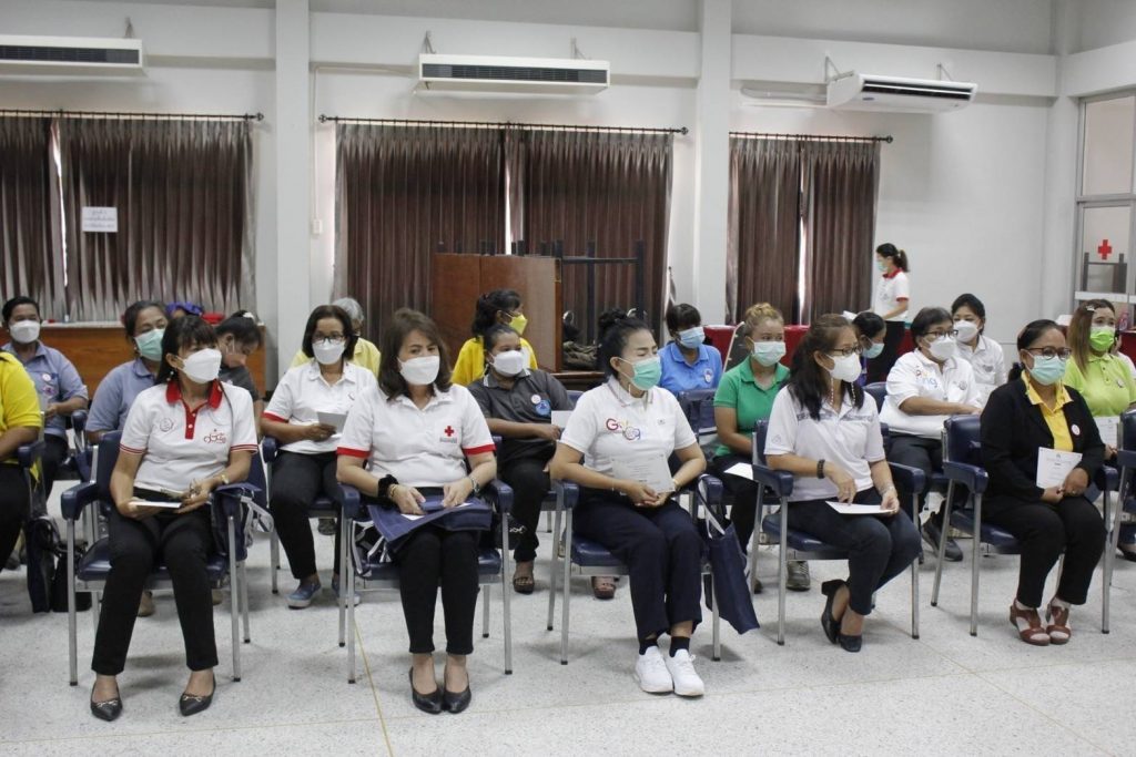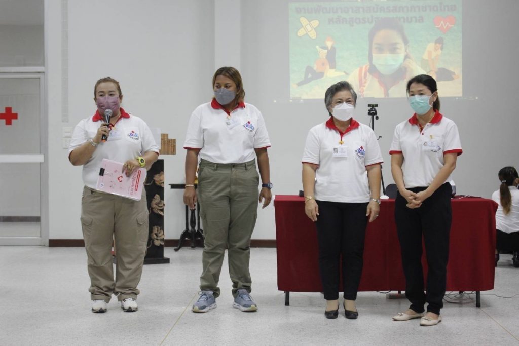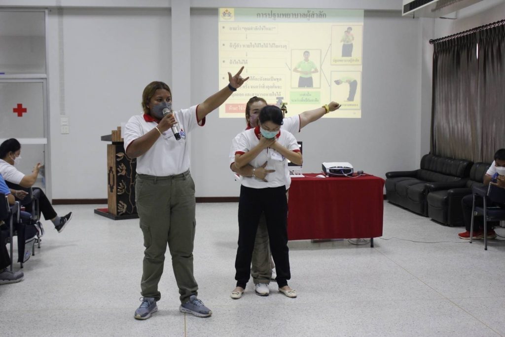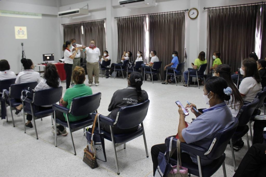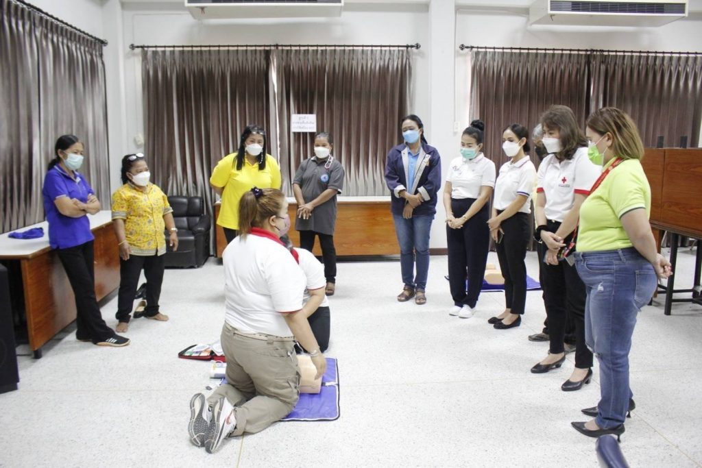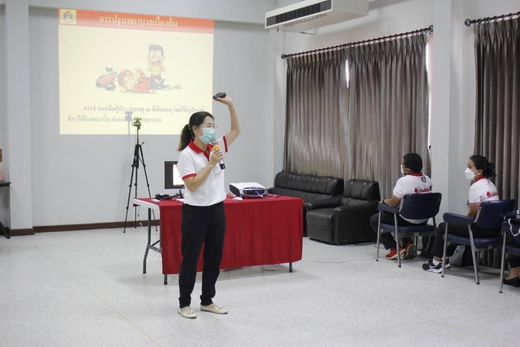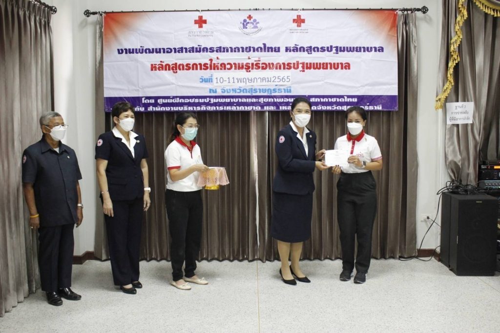 จัดอบรม ” โครงการพัฒนาอาสาสมัครสภากาชาดไทยหลักสูตรปฐมพยาบาล ” วันพุธที่ 11 พฤษภาคม พ.ศ. 2565 ระหว่างเวลา 08:30 – 12:00 น. นางอุรสา จินโต นายกเหล่ากาชาดจังหวัดสุราษฎร์ธานี ประธานแม่บ้านมหาดไทยจังหวัดสุราษฎร์ธานี มอบหมายให้ ดร.พงษ์จันทร์ คล้ายอุดม รองนายกเหล่ากาชาดจังหวัดสุราษฎร์ธานี รองประธานแม่บ้านมหาดไทยจังหวัดสุราษฎร์ธานี เป็นประธานในพิธีเปิดอบรม