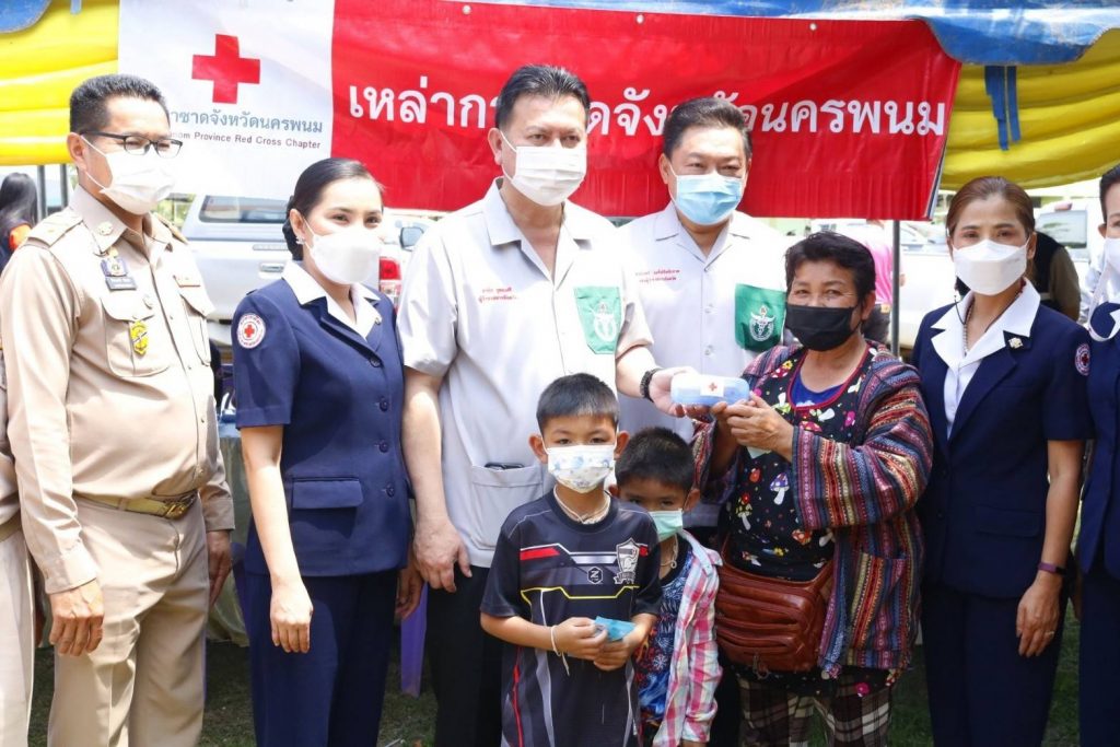 วันที่ 21เมษายน 2564 นายชาธิป รุจนเสรี ผู้ว่าราชการจังหวัดนครพนม ในฐานะประธานที่ปรึกษาคณะกรรมการ เหล่ากาชาดจังหวัดนครพนม กาญจนี รุจนเสรี นายกเหล่ากาชาดจังหวัดนครพนม พร้อมด้วยนางศุทธิกานต์ วงศ์สถิตจิรกาล รองนายกเหล่ากาชาดจังหวัดนครพนม นำคณะกรรมการเหล่ากาชาดจังหวัดนครพนม ตลอดจนบุคลากรและเจ้าหน้าที่เหล่ากาชาดจังหวัดนครพนม เคลื่อนที่ลงพื้นที่มอบแว่นสายตาแก่ผู้สูงอายุ ผู้ยากไร้ ผู้ด้อยโอกาส ครั้งที่ 5 ฟรีโดยไม่มีค่าใช้จ่าย โดยบูรณาการร่วมกับโครงการบริการจังหวัดเคลื่อนที่แบบบูรณาการหน่วยบำบัดทุกข์ บำรุงสุข สร้างรอยยิ้ม ให้ประชาชน ประจำปีงบประมาณ พ.ศ 2565 เพื่อให้บริการประชาชนเพื่อนำหน่วยงานทั้งภาครัฐ และภาคเอกชน ไปให้บริการประชาชน ณ ณ โรงเรียนบ้านน้ำก่ำ (ล้ำประชาอุปถัมภ์) หมู่ที่ 3 ตำบลน้ำก่ำ อำเภอธาตุพนม จังหวัดนครพนม ซึ่งมีประชาชนกลุ่มเป้าหมายเข้าตรวจวัดค่าสายตาและรับแว่นฟรีไม่มีค่าใช้จ่าย