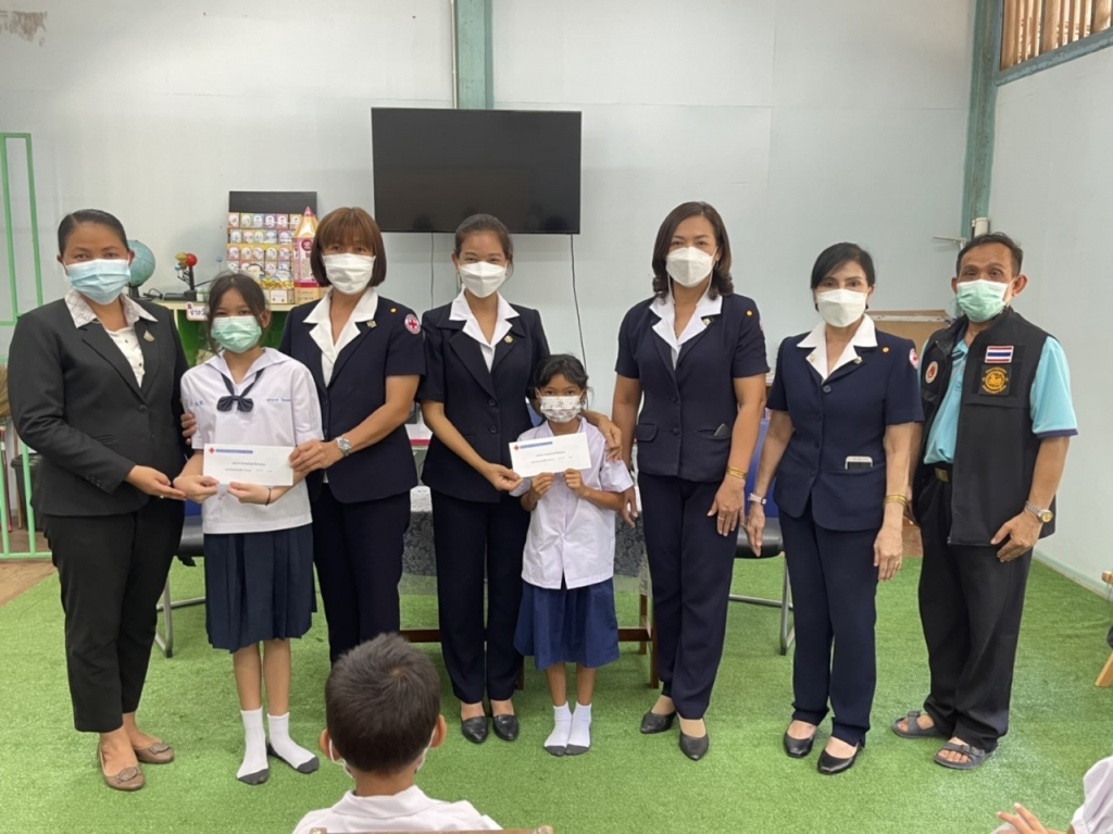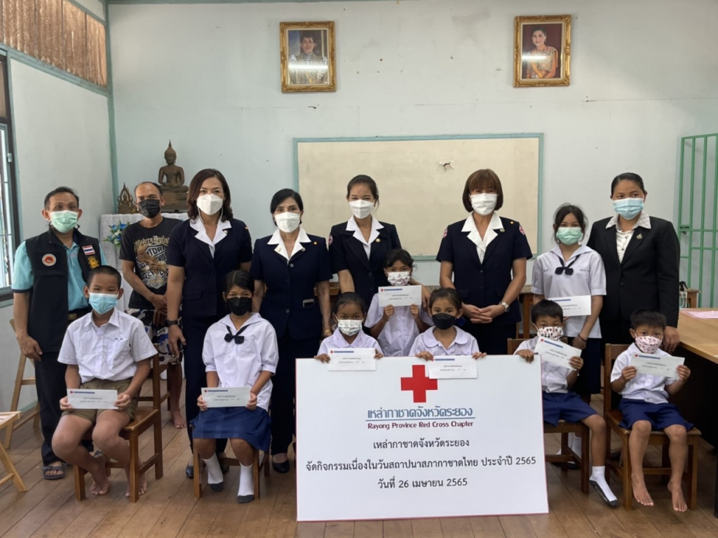 วันที่ 26 เมษายน 2565 นางธัมมิกา เอี่ยมแสง นายกเหล่ากาชาดจังหวัดระยอง มอบหมายให้นางนิลวรรณ เหมะรักษ์ รองนายกเหล่ากาชาดจังหวัดระยอง พร้อมด้วยคณะกรรมการ และสมาชิกเหล่ากาชาดจังหวัดระยอง มอบเงินทุนการศึกษา ตามโครงการเหล่ากาชาดจังหวัดระยอง มอบทุนการศึกษา เด็กนักเรียนและเยาวชนผู้ยากไร้ ประจำปีงบประมาณ 2565 เนื่องในวันสถาปนาสภากาชาดไทย ประจำปี 2565 (26 เมษายน 2565) จำนวน 10 ทุนๆ ละ 2,000 บาท เป็นจำนวนเงินทั้งสิ้น 20,000 บาท ณ โรงเรียนบ้านตะพุนทอง ตำบลกะเฉด อำเภอเมืองระยอง จังหวัดระยอง