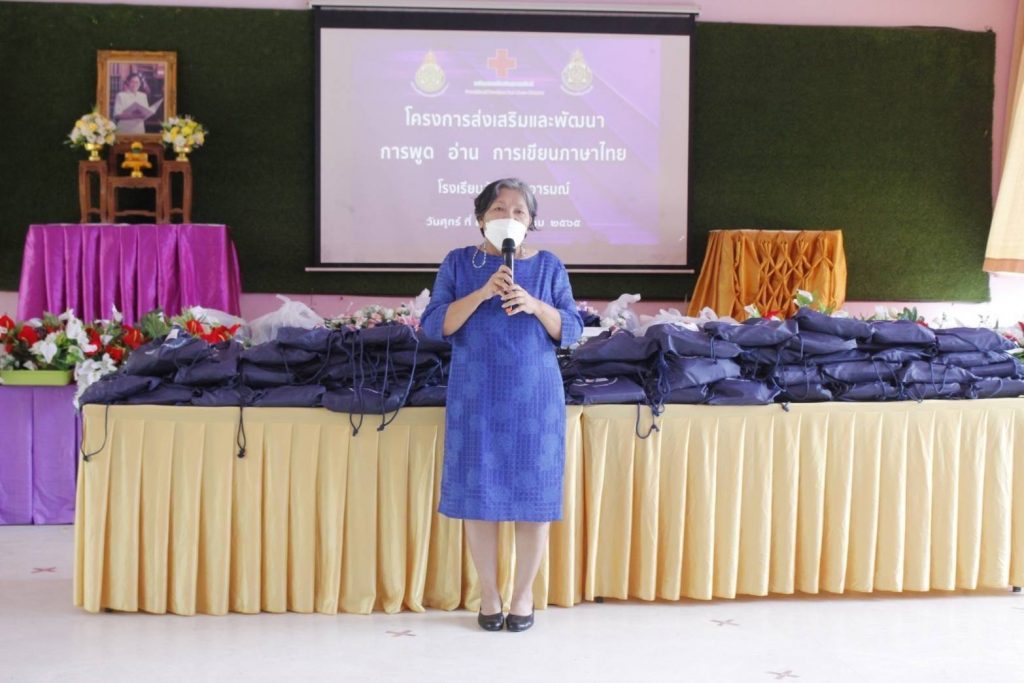 ตาม “โครงการส่งเสริมและพัฒนาการพูด อ่าน และเขียนภาษาไทย” เพื่อสนองพระราชดำริ สมเด็จพระกนิษฐาธิราชเจ้า กรมสมเด็จพระเทพรัตนราชสุดาฯ สยามบรมราชกุมารี อุปนายิกาผู้อำนวยการสภากาชาดไทย ในการแก้ไขปัญหาเด็กนักเรียน ในระดับชั้นประถมศึกษาปีที่ 1-6