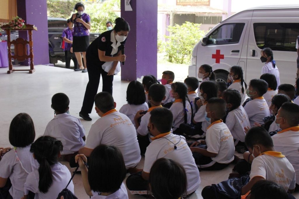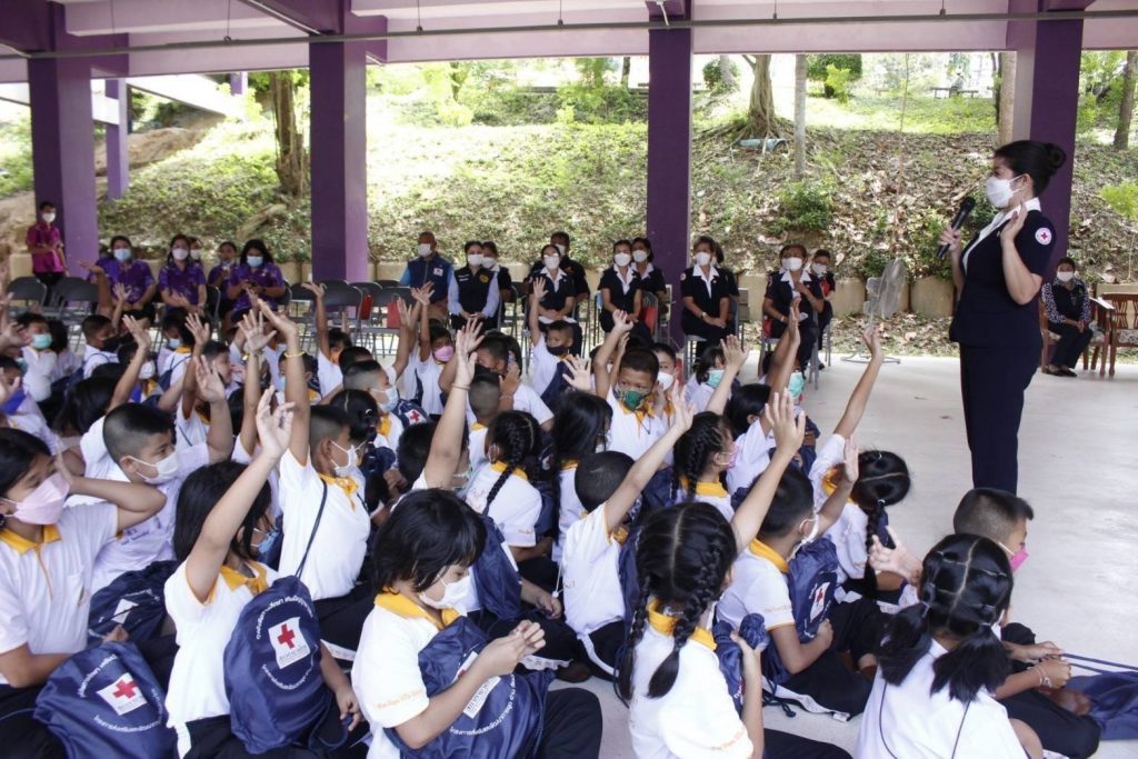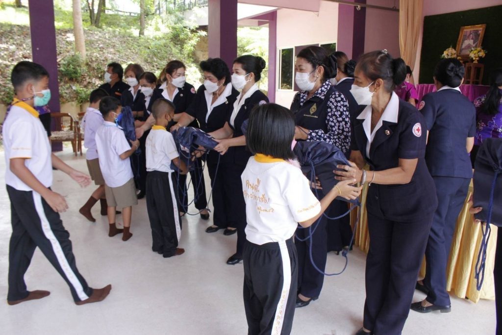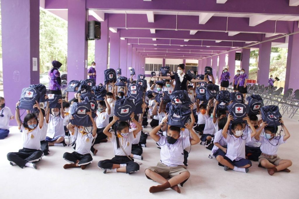 วันที่ 20 พฤษภาคม 2565 นางอุรสา จินโต นายกเหล่ากาชาดจังหวัดสุราษฎร์ธานี ประธานแม่บ้านมหาดไทยจังหวัดสุราษฎร์ธานี พร้อมด้วย นางศุภลักษณ์ พรมสินธุ รองนายกเหล่ากาชาดจังหวัดสุราษฎร์ธานี รองประธานแม่บ้านมหาดไทยจังหวัดสุราษฎร์ธานี กรรมการเหล่ากาชาดจังหวัดสุราษฎร์ธานี สมาชิกเหล่ากาชาดจังหวัดสุราษฎร์ธานี และสมาชิกชมรมแม่บ้านมหาดไทยจังหวัดสุราษฎร์ธานี ร่วมลงพื้นที่ ตำบลบ่อผุด อำเภอเกาะสมุย จังหวัดสุราษฎร์ธานี เพื่อไปมอบ ” ถุงยังชีพการศึกษา เสริมปัญญาเยาวชน ” ให้แก่เด็กนักเรียน โรงเรียนวัดสว่างอารมณ์