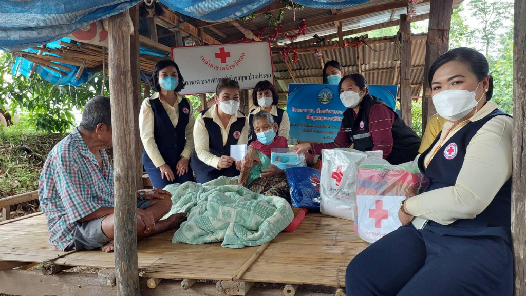 ในการนี้ เหล่ากาชาดจังหวัดเลย มอบเงินช่วยเหลือเบื้องต้น รายละ 1,000 บาท รวมเป็นจำนวน 4,000 บาท ถุงเครื่องอุปโภคบริโภค จำนวน 4 ชุด ผ้าห่ม หมอน ให้กับแก่กลุ่มเปราะบางทั้ง 4 รายดังกล่าว
