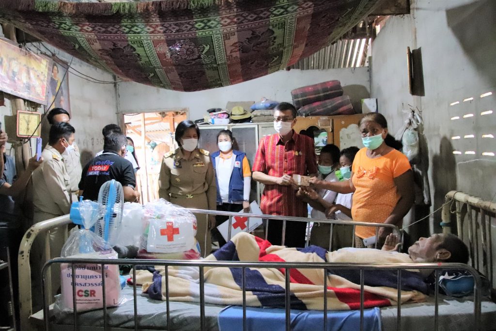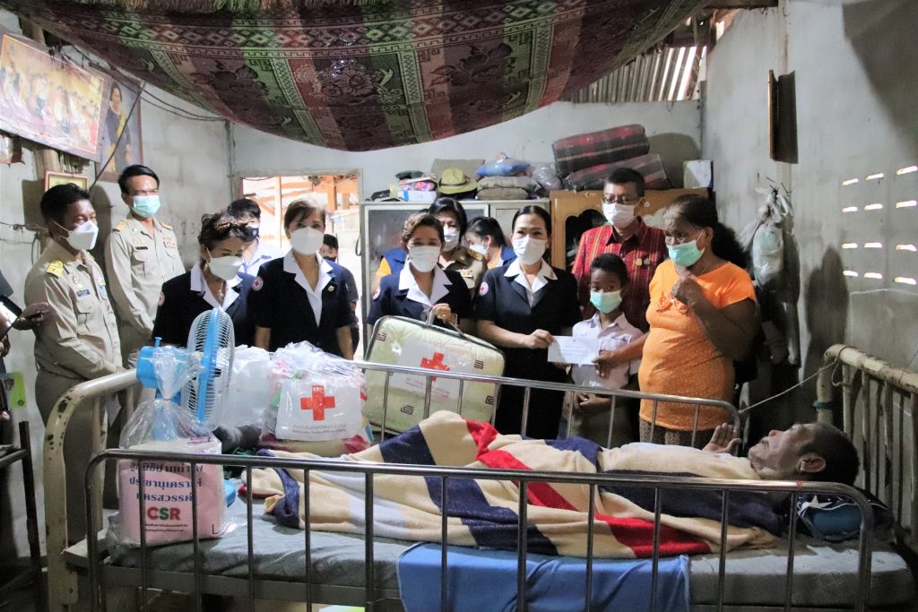 วันที่ 17 กุมภาพันธ์ 2565 นายชยันต์ ศิริมาศ ผู้ว่าราชการจังหวัดนครสวรรค์ พร้อมด้วยทันตแพทย์หญิงศิริรัตน์ ศิริมาศ นายกเหล่ากาชาดจังหวัดนครสวรรค์ นางวิยดา พลับน้อย รองนายกเหล่ากาชาดจังหวัดนครสวรรค์ คณะกรรมการและสมาชิกเหล่ากาชาดจังหวัดนครสวรรค์ ลงพื้นที่ร่วมกับอำเภอไพศาลี ร่วมด้วยหน่วยงานพัฒนาสังคมและความมั่นคงของมนุษย์จังหวัด สำนักงานป้องกันและบรรเทาสาธารณภัยจังหวัด หน่วยงานราชการส่วนท้องถิ่น และผู้ที่เกี่ยวข้อง เพื่อเยี่ยมให้กำลังใจครอบครัวผู้ด้อยโอกาส ยากไร้ ซึ่งเป็นผู้พิการ ป่วยติดเตียง ในพื้นที่ ตำบลวังข่อย อำเภอไพศาลี จำนวน 2 ราย คือ