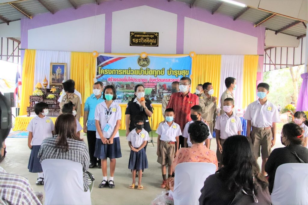 วันที่ 17 กุมภาพันธ์ 2565 ทันตแพทย์หญิงศิริรัตน์ ศิริมาศ นายกเหล่ากาชาดจังหวัดนครสวรรค์ พร้อมด้วยนางวิยดา พลับน้อย รองนายกเหล่ากาชาดจังหวัดนครสวรรค์ คณะกรรมการและสมาชิกเหล่ากาชาดจังหวัดนครสวรรค์ ร่วมโครงการหน่วยบำบัดทุกข์ บำรุงสุข สร้างรอยยิ้มให้กับประชาชนจังหวัดนครสวรรค์ โดยมีนายชยันต์ ศิริมาศ ผู้ว่าราชการจังหวัดนครสวรรค์ เป็นประธานฯ และนางสาวสร้อยสุรีย์รัตน์ พลพรพิสิฐ นายอำเภอไพศาลี กล่าวรายงาน ซึ่งดำเนินกิจกรรมพบปะประชาชน มอบเงินสงเคราะห์แก่นักเรียนยากจนจำนวน 20 ราย มอบเงินสงเคราะห์