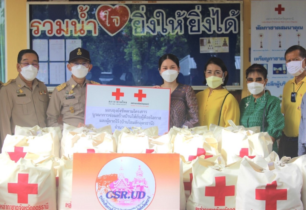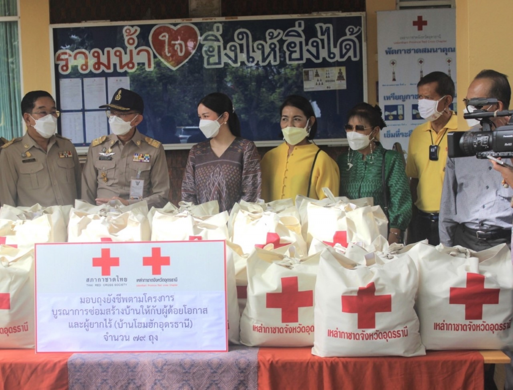 วันจันทร์ที่ 9 พฤษภาคม 2565 โดย นางอรจิรา ศิริมงคล นายกเหล่ากาชาดจังหวัดอุดรธานี ร่วมมอบถุงยังชีพตามโครงการบูรณาการซ่อมสร้างบ้านให้กับผู้ด้อยโอกาส และผู้ยากไร้ (บ้านโฮมฮักอุดรธานี) ในการนี้ นายกองเอกปราโมทย์ ธัญญพืช รองผู้ว่าราชการจังหวัดอุดรธานี/ที่ปรึกษาคณะกรรมการเหล่ากาชาดจังหวัดอุดรธานี คณะกรรมการเหล่ากาชาดจังหวัดอุดรธานี เหรัญญิกเหล่ากาชาดจังหวัดอุดรธานี ผู้ช่วยเลขานุการเหล่ากาชาดจังหวัดอุดรธานี พร้อมด้วยพัฒนาสังคมและความมั่นคงของมนุษย์จังหวัดอุดรธานี ร่วมมอบถุงยังชีพฯ (จำนวน 79 ถุง) ณ สำนักงานเหล่ากาชาดจังหวัดอุดรธานี อำเภอเมืองอุดรธานี จังหวัดอุดรธานี