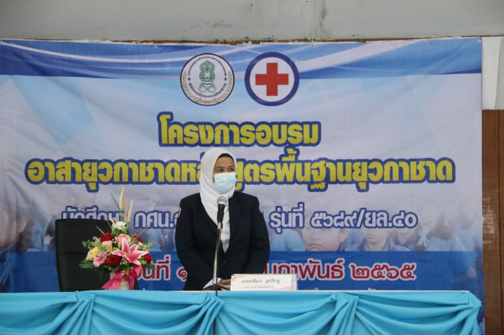 วันที่ 14 กุมภาพันธ์ 2565 ผศ.ดร ทิพยวรรณ นิลทยา นายกเหล่ากาชาดจังหวัดยะลา มอบหมายให้ นางพาตีเมาะ สะดียามู รองผู้ว่าราชการจังหวัดยะลา รองนายกเหล่ากชาดจังหวัดยะลา เป็นประธานพิธีเปิดโครงการอบรมอาสายุวกาชาด หลักสูตรพื้นฐานยุวกาชาด ประจำปี 2565 โดยเหล่ากาชาดจังหวัดยะลาบรูณาการร่วมกับศูนย์การศึกษานอกระบบและการศึกษาตามอัธยาศัยจังหวัดยะลาในการจัดอบรม