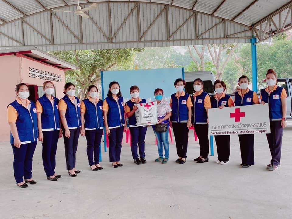 โดย เหล่ากาชาดจังหวัดสุพรรณบุรี มอบเครื่องอุปโภค – บริโภค รายละ 1 ชุด ณ ต.เจดีย์ อ.อู่ทอง จ.สุพรรณบุรี