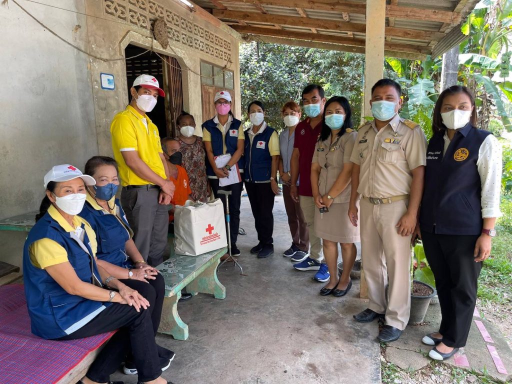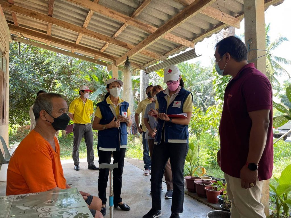 ในการนี้ เหล่ากาชาดจังหวัดตรัง มอบชุดธารน้ำใจ จำนวนคนละ 1 ชุด เพื่อช่วยเหลือเบื้องต้น