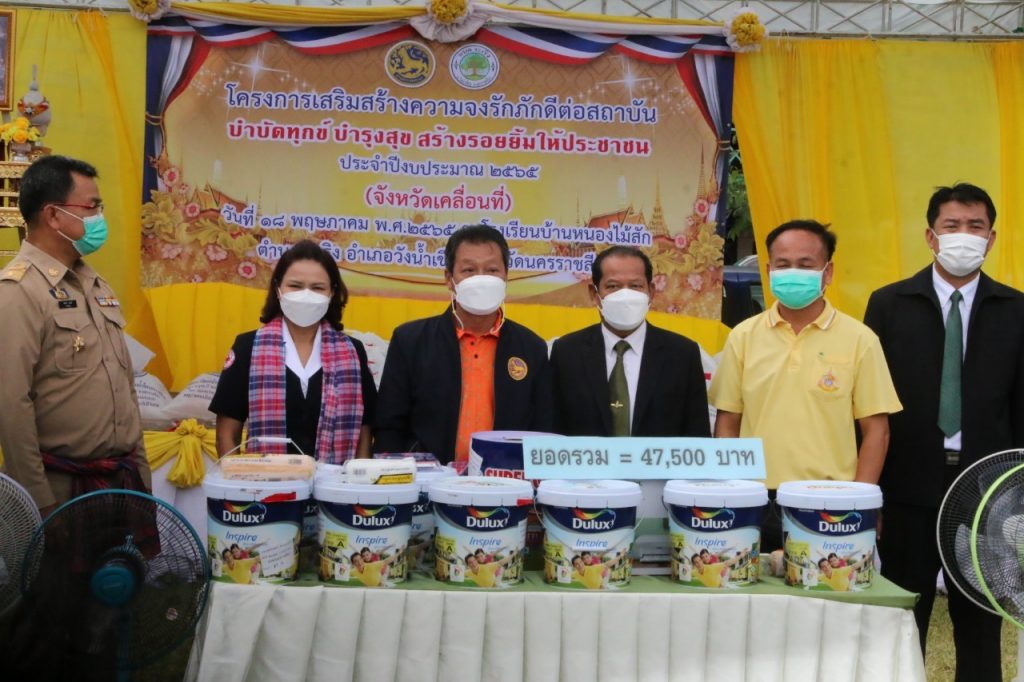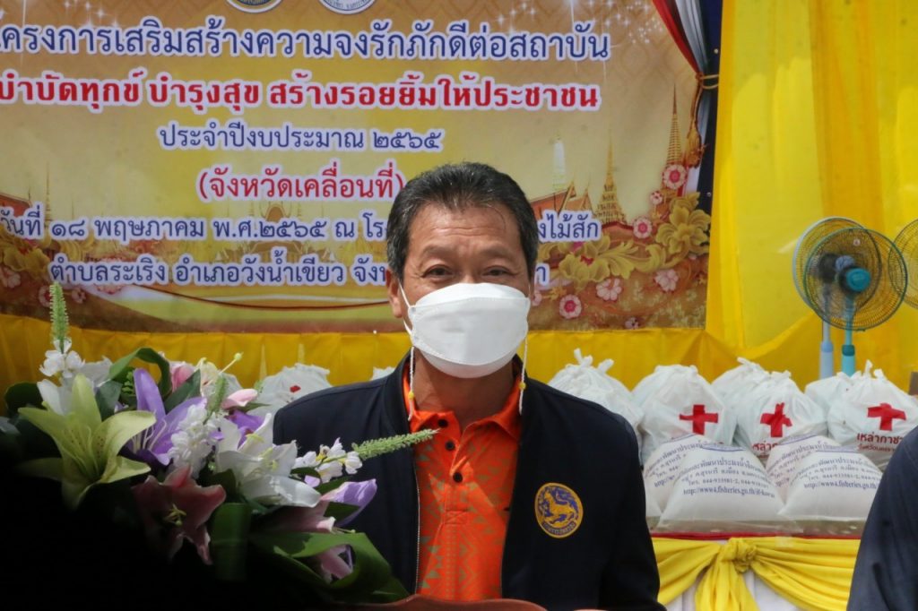 วันที่ 18 พฤษภาคม 2565 นางณัฏฐินีภรณ์ จันทรโณทัย นายกเหล่ากาชาดจังหวัดนครราชสีมา มอบหมายให้ รอ.หญิงจิตชนก กิจวิรัตน์ กรรมการเหล่ากาชาดจังหวัดนครราชสีมา พร้อมด้วยกรรมการและสมาชิกเหล่ากาชาด จังหวัดนครราชสีมา ร่วมโครงการ “สร้างเสริมความจงรักภักดีดีต่อสถาบัน บำบัดทุกข์ บำรุงสุข ให้ประชาชน” (จังหวัดเคลื่อนที่) ณ ณ.โรงเรียนบ้านหนองไม้สัก บ้านหนองไม้สัก ม.6 ต.ระเริง อ.วังน้ำเขียว จ.นครราชสีมาโดยมี นายชูศักดิ์ ชุนเกาะ รองผู้ว่าราชการจังหวัดนครราชสีมา เป็นประธานในพิธี