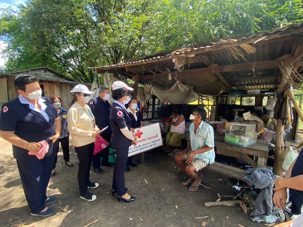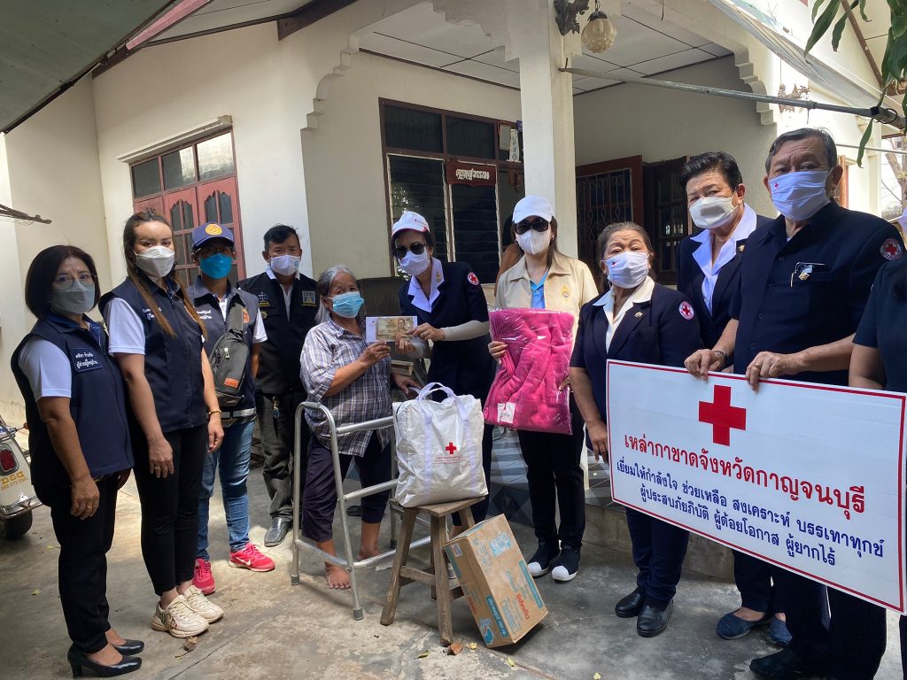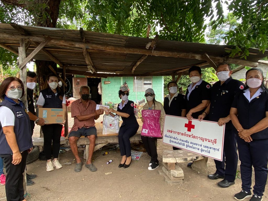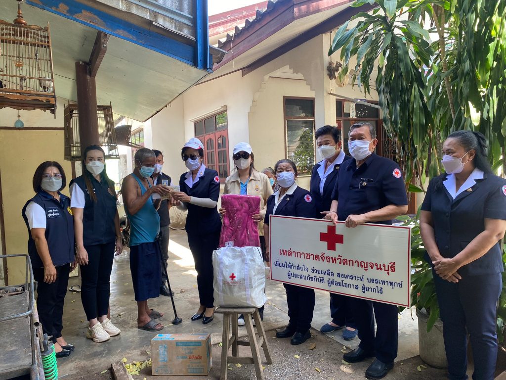 วันที่ 10 มิถุนายน 2565 นางรชยา ภูมิสวัสดิ์ นายกเหล่ากาชาดจังหวัดกาญจนบุรี พร้อมด้วยนางสาวกิตติยา จึงรุ่งเจริญกิจ รองนายกเหล่ากาชาดจังหวัดกาญจนบุรี และกรรมการ ที่ปรึกษา สมาชิกเหล่ากาชาดจังหวัดกาญจนบุรี ลงพื้นที่ช่วยเหลือผู้สูงอายุ ผู้พิการ ที่ยากไร้ ในเขตพื้นที่บ้านห้วยน้ำใส หมู่ 8 อำเภอเมืองกาญจนบุรี จังหวัดกาญจนบุรี จำนวน 13 ราย โดยเหล่ากาชาดจังหวัดกาญจนบุรี ได้มอบเครื่องอุปโภค – บริโภค จำนวน 13 ชุด ผ้าห่ม 13 ผืน และเงินช่วยเหลือเบื้องต้น รายละ 3,000 บาท รวมเป็นเงิน 39,000 บาท