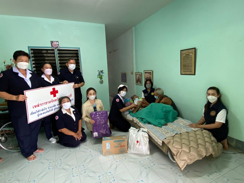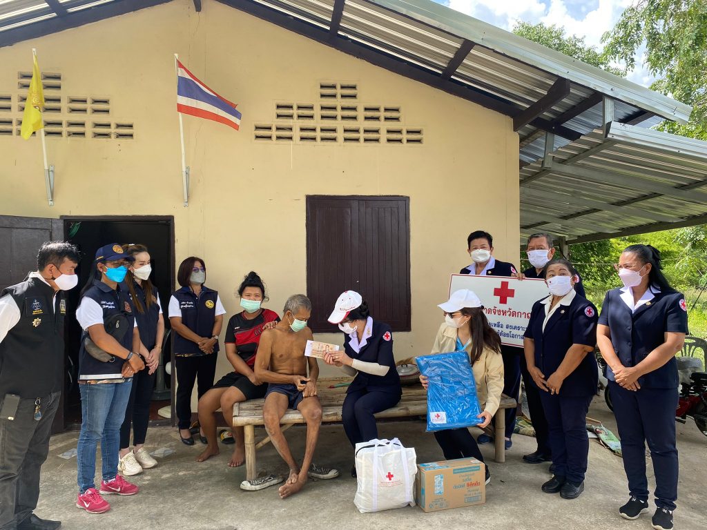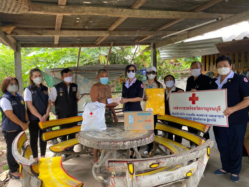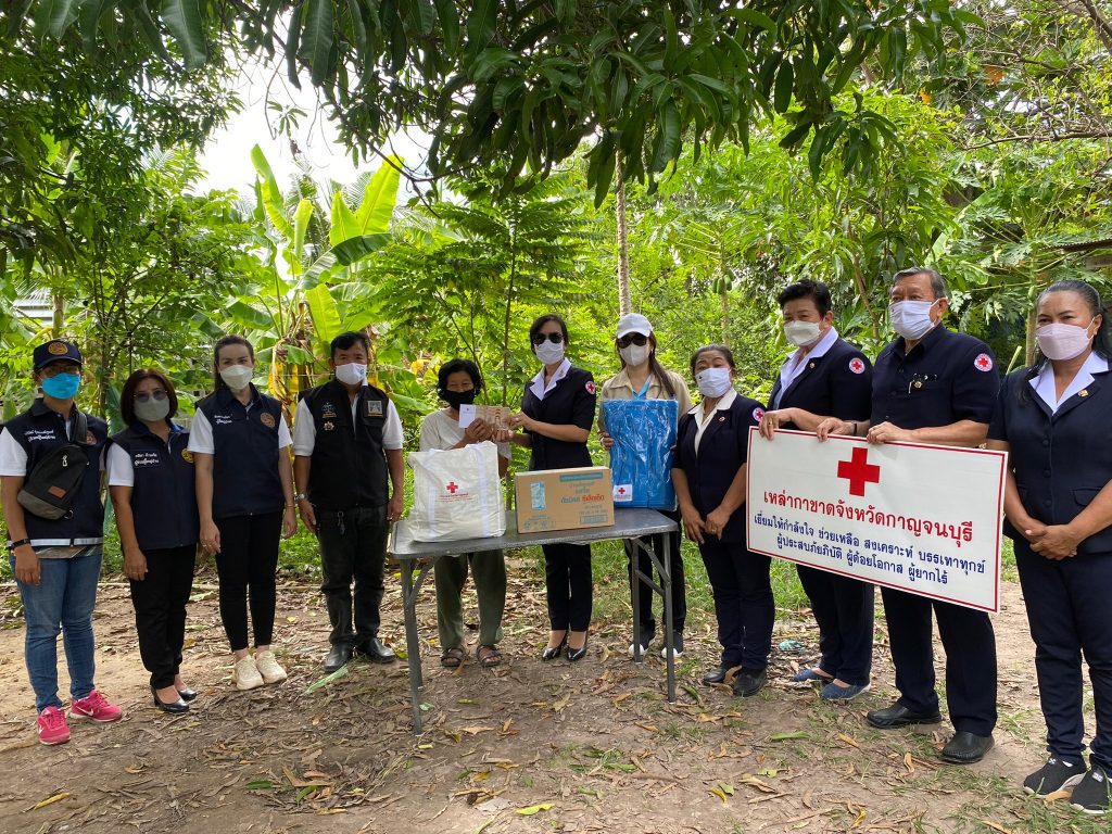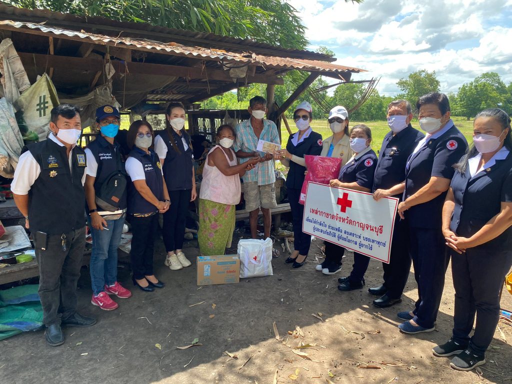 วันที่ 10 มิถุนายน 2565 นางรชยา ภูมิสวัสดิ์ นายกเหล่ากาชาดจังหวัดกาญจนบุรี พร้อมด้วยนางสาวกิตติยา จึงรุ่งเจริญกิจ รองนายกเหล่ากาชาดจังหวัดกาญจนบุรี และกรรมการ ที่ปรึกษา สมาชิกเหล่ากาชาดจังหวัดกาญจนบุรี ลงพื้นที่ช่วยเหลือผู้สูงอายุ ผู้พิการ ที่ยากไร้ ในเขตพื้นที่บ้านห้วยน้ำใส หมู่ 8 อำเภอเมืองกาญจนบุรี จังหวัดกาญจนบุรี จำนวน 13 ราย โดยเหล่ากาชาดจังหวัดกาญจนบุรี ได้มอบเครื่องอุปโภค – บริโภค จำนวน 13 ชุด ผ้าห่ม 13 ผืน และเงินช่วยเหลือเบื้องต้น รายละ 3,000 บาท รวมเป็นเงิน 39,000 บาท