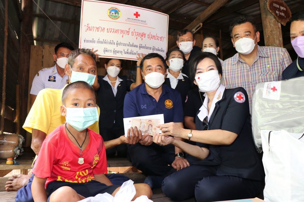 วันที่ 14 มิถุนายน2565 นายจีระเกียรติ ภูมิสวัสดิ์ผู้ว่าราชการจังหวัดกาญจนบุรี (ประธานในพิธี) พร้อมด้วยนางรชยา ภูมิสวัสดิ์ นายกเหล่ากาชาดจังหวัดกาญจนบุรี และ นางวิมลทิพย์เวียงสิมมา นางสาวเขมิกา ประเสริฐสม ภรรยาปลัดจังหวัดกาญจนบุรี เหรัญญิกเหล่ากาชาดฯ กรรมการเหล่ากาชาดจังหวัดกาญจนบุรี ร่วมออกหน่วยจังหวัดเคลื่อนที่ บำบัดทุกข์ บำรุงสุข สร้างรอยยิ้มให้กับประชาชน ครั้งที่ 10 ประจำปี 2565 โดยมีนายอำเภอศรีสวัสดิ์ หัวหน้าส่วนราชการ ผู้นำชุมชนในท้องที่ ให้การต้อนรับพร้อมรายงานสภาพปัญหาความเดือดร้อนและความต้องการในพื้นที่อำเภอศรีสวัสดิ์ โดยเหล่ากาชาดจังหวัดกาญจนบุรี ได้สนับสนุนเครื่องอุปโภค – บริโภค จำนวน 100 ชุด และแว่นสายตายาวผู้สูงอายุ จำนวน 200 อัน เพื่อช่วยเหลือผู้ยากไร้ ผู้ด้อยโอกาส ในพื้นที่อำเภอศรีสวัสดิ์ และออกเยี่ยมเยียนประชาชน ผู้ป่วยติดเตียง ผู้ยากไร้ ผู้สูงอายุ ผู้ด้อยโอกาส จำนวน 3 ราย โดยเหล่ากาชาดจังหวัดกาญจนบุรี มอบเครื่องอุปโภค – บริโภค 3 ชุด ผ้าห่ม 3 ผืน พร้อมมอบเงินช่วยเหลือเบื้องต้น 3 รายละ 3,000 บาท รวมเป็นเงิน 9,000 บาท