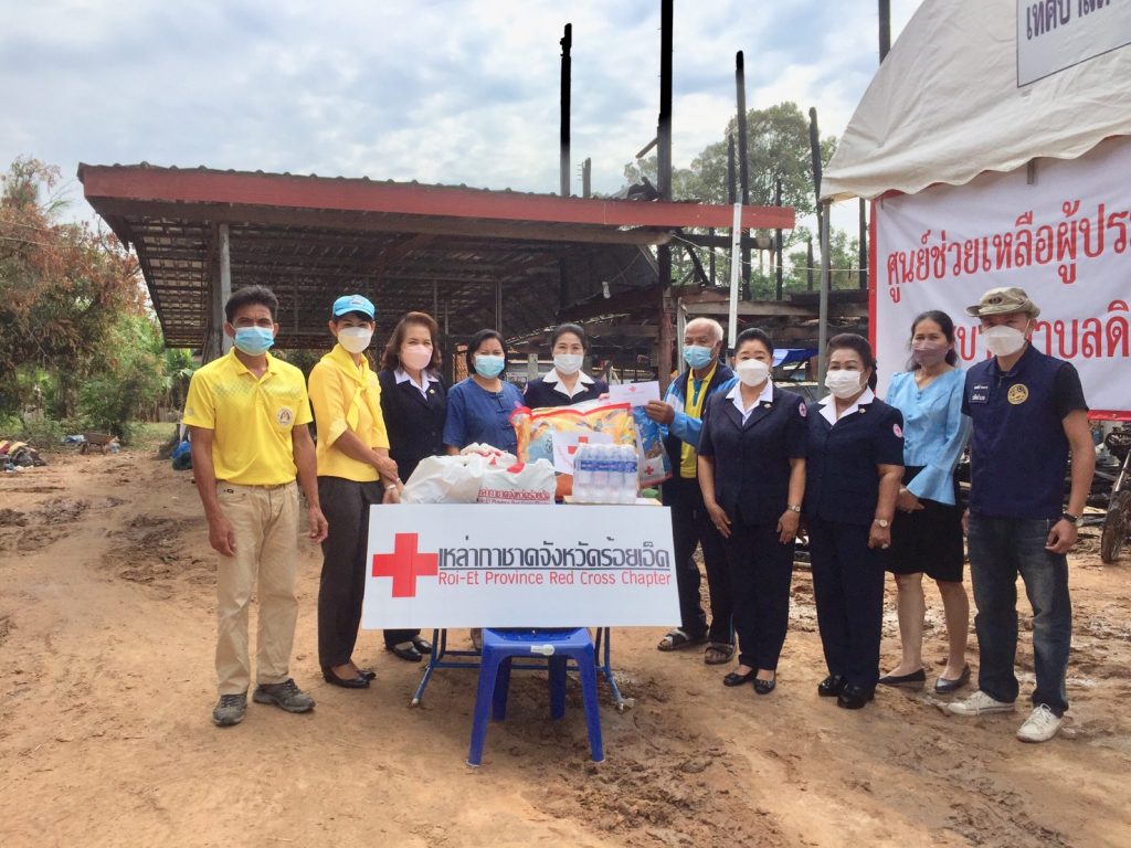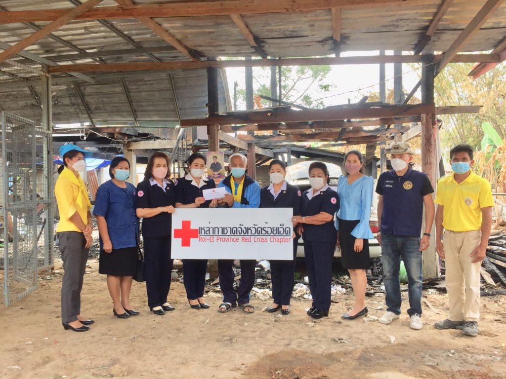 วันที่ 17 กุมภาพันธ์ 2565 นางดนิตา สมจิตต์ นายกเหล่ากาชาดจังหวัดร้อยเอ็ด มอบหมายให้นางอัจฉรา ราชบุรี รองนายกเหล่ากาชาด-จังหวัดร้อยเอ็ด พร้อมด้วยคณะกรรมการเหล่ากาชาดจังหวัดร้อยเอ็ด ที่ปรึกษาคณะกรรมการเหล่ากาชาดจังหวัด-ร้อยเอ็ด สมาชิกเหล่ากาชาดจังหวัดร้อยเอ็ด นายอำเภอ ปลัดอำเภอ และผู้บริหารองค์กรปกครองส่วนท้องถิ่นออกเยี่ยมให้กำลังใจประชาชนผู้ประสบอัคคีภัยในพื้นที่ตำบลดินดำ อำเภอจังหาร กรณี นายสมบูรณ์ เสถียรเขต บ้านพยอมใหญ่ บ้านเลขที่ 7 หมู่ที่ 4 ตำบลดินดำ อำเภอจังหาร จังหวัดร้อยเอ็ด โดยได้บรรเทาทุกข์มอบเงินช่วยเหลือ จำนวน 10,000 บาท มอบถุงยังชีพ จำนวน 2 ถุง มอบน้ำดื่ม จำนวน 1 แพ็ค มอบนม จำนวน 1 ลัง มอบผ้าห่ม จำนวน 2 ผืน มอบมุ้ง จำนวน 2 หลัง และเสื้อผ้าที่ได้รับความอนุเคราะห์ จำนวน 10 ตัว เพื่อบรรเทาความ-เดือดร้อนและสร้างขวัญกำลังใจแก่ผู้ประสบ