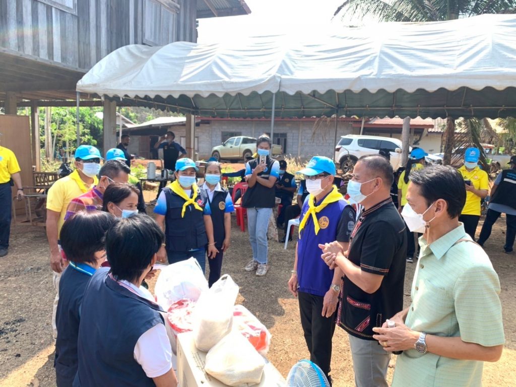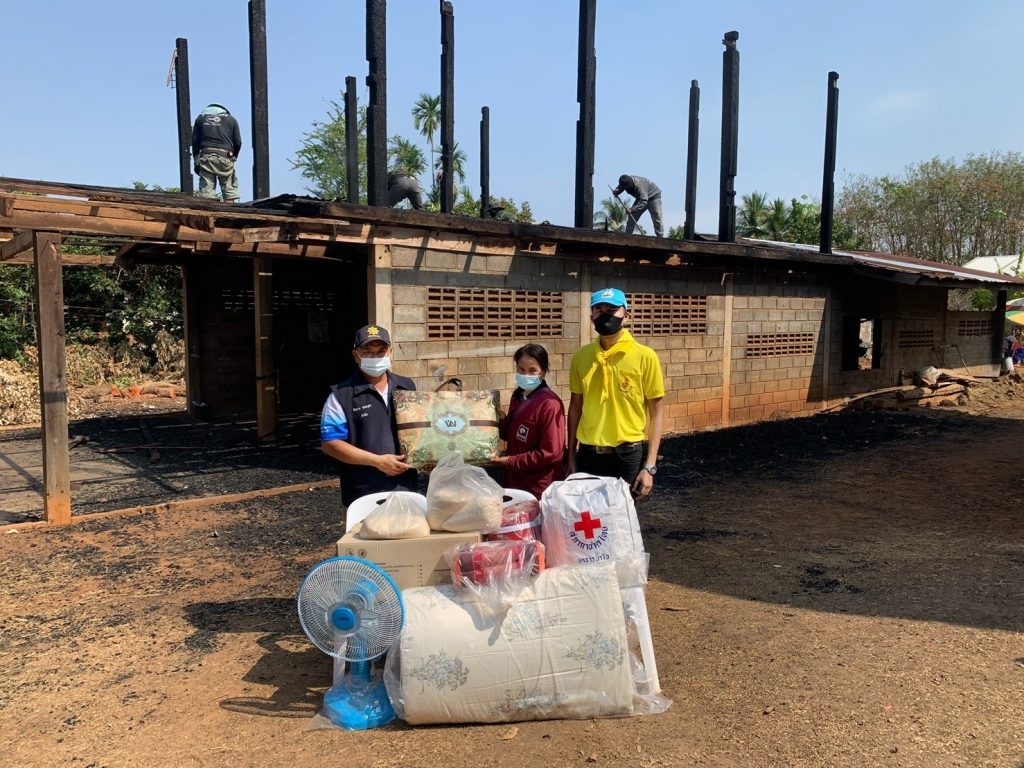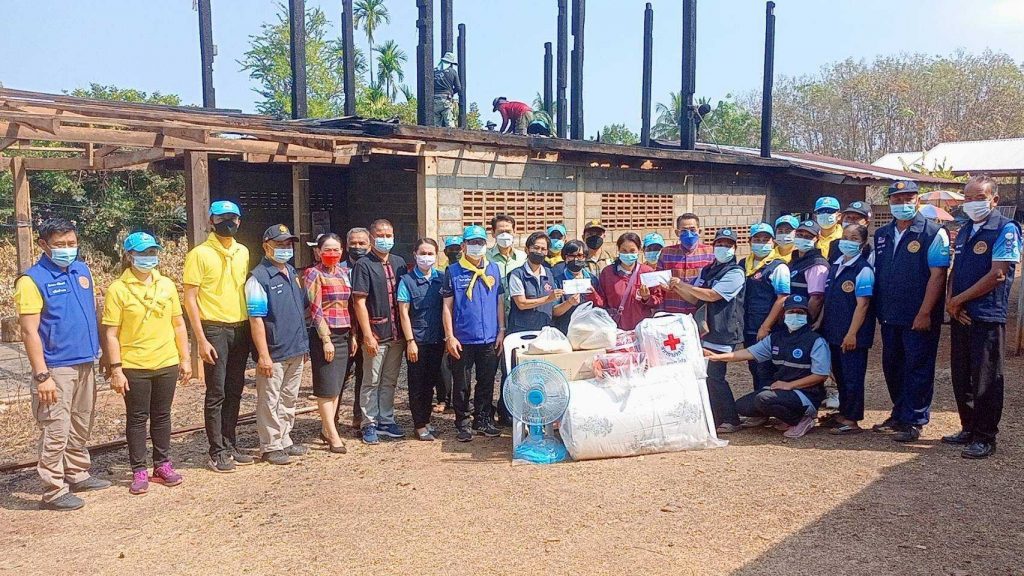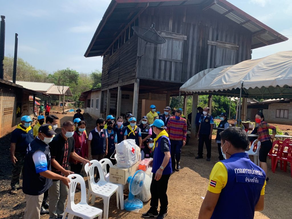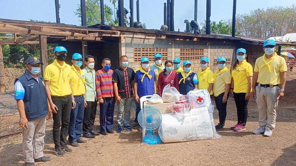 อำเภอน้ำยืน พร้อมมอบเครื่องอุปโภค-บริโภค และเงินช่วยเหลือเบื้องต้นตามมติคณะกรรมการเหล่ากาชาดจังหวัดอุบลราชธานี จำนวน