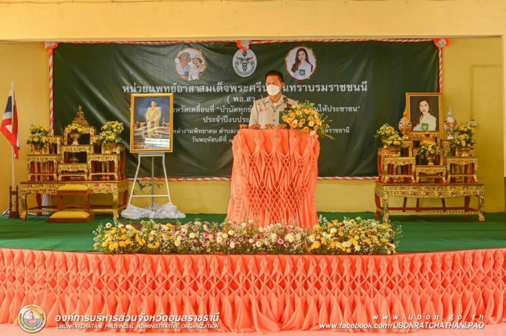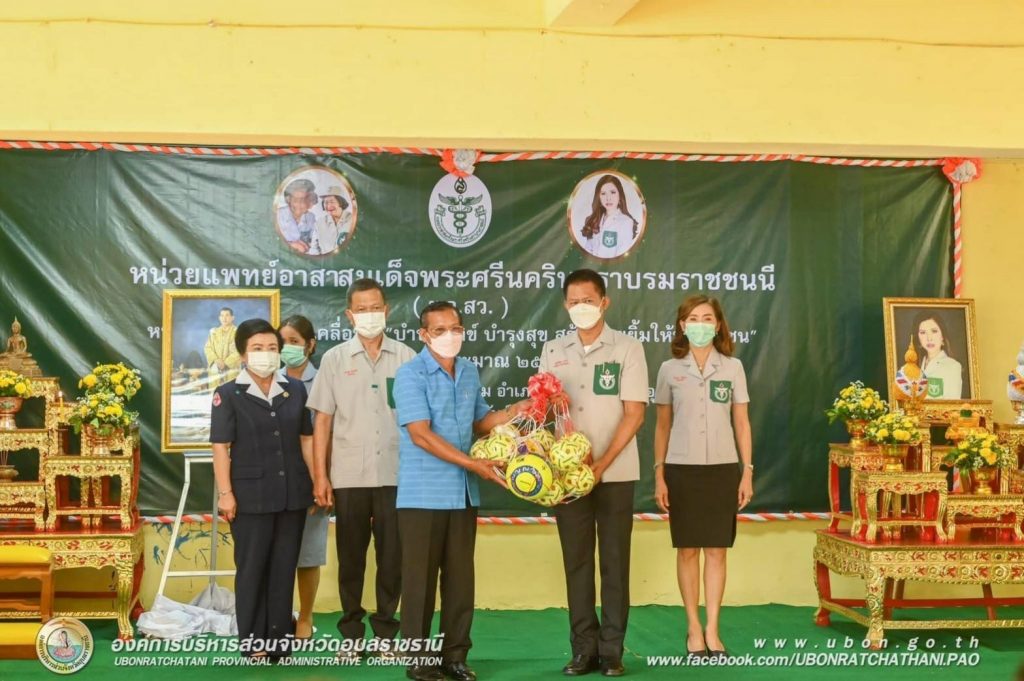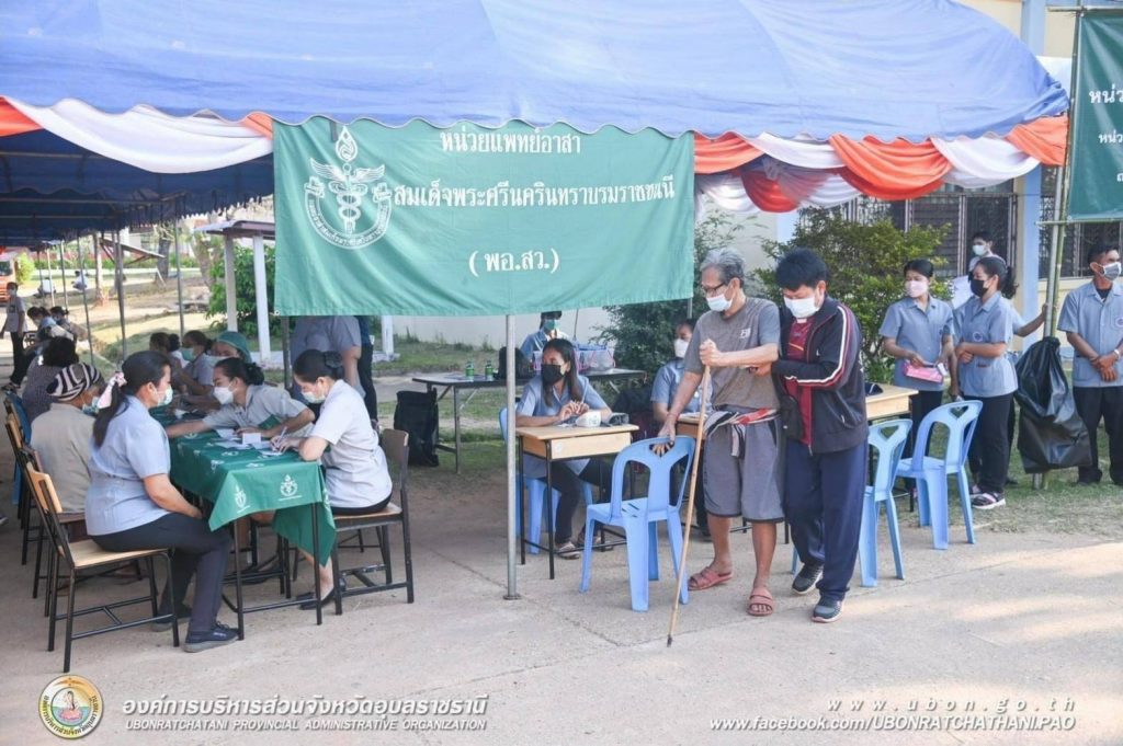 ด้วยหน่วยแพทย์อาสาสมเด็จพระศรีนครินทราบรมราชชนนี (พอ.สว.) จังหวัดอุบลราชธานี บูรณาการร่วมกับการออกหน่วยบริการจังหวัดเคลื่อนที่ บำบัดทุกข์ บำรุงสุข สร้างรอยยิ้มให้ประชาชน ประจำปีงบประมาณ พ.ศ.2565 โดยมีส่วนราชการ/หน่วยงานต่าง ๆ ของจังหวัด ร่วมออกหน่วยบริการจังหวัดเคลื่อนที่ ทั้งนี้เพื่อให้ความช่วยเหลือประชาชนในที่ห่างไกลให้ได้รับบริการด้านการแพทย์และสาธารณสุข และเข้าถึงการให้บริการอื่นจากส่วนราชการในพื้นที่จังหวัดอุบลราชธานี โดยมีกิจกรรมการบริการตรวจรักษาโรคทั่วไป ตรวจรักษาทางทันตกรรม บริการแพทย์แผนไทย บริการให้คำแนะนำ-ปรึกษาด้านสุขภาพ และแพทย์ทางเลือกแก่ประชาชน รวมทั้งบริการตัดผม ตรวจพัฒนาเด็ก/สุขภาพจิต บริจาคโลหิต บริการฉีดวัคซีน ในการนี้สำนักงานเหล่ากาชาดอุบลราชธานี ได้มอบถุงยังชีพและผ้าห่มกันหนาวแก่ผู้ยากไร้ยากจน และเยี่ยมผู้ป่วยติดเตียง จำนวน 4 ราย โดยองค์การบริหารส่วนจังหวัดอุบลราชธานี ได้นำกิจกรรมการให้ความรู้เกี่ยวกับการแจ้งเหตุเจ็บป่วยฉุกเฉินการปฐมพยาบาล การช่วยฟื้นคืนชีพ (CPR) และการใช้เครื่องกระตุกหัวใจไฟฟ้าอัตโนมัติ(AED) ร่วมให้บริการประชาชนในครั้งนี้ด้วย