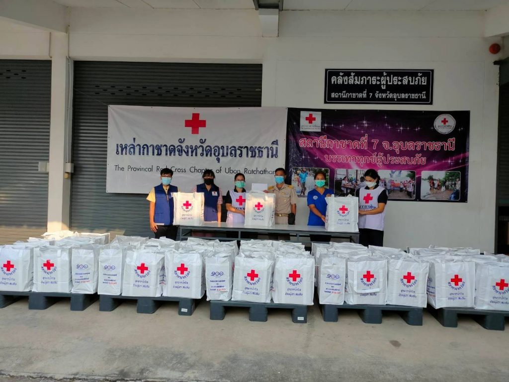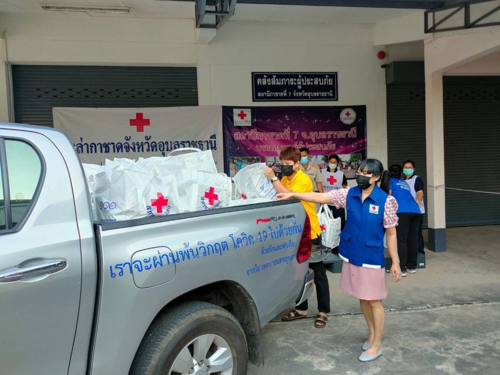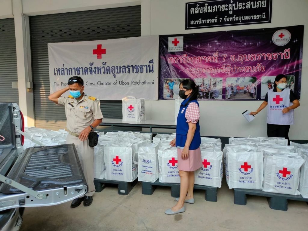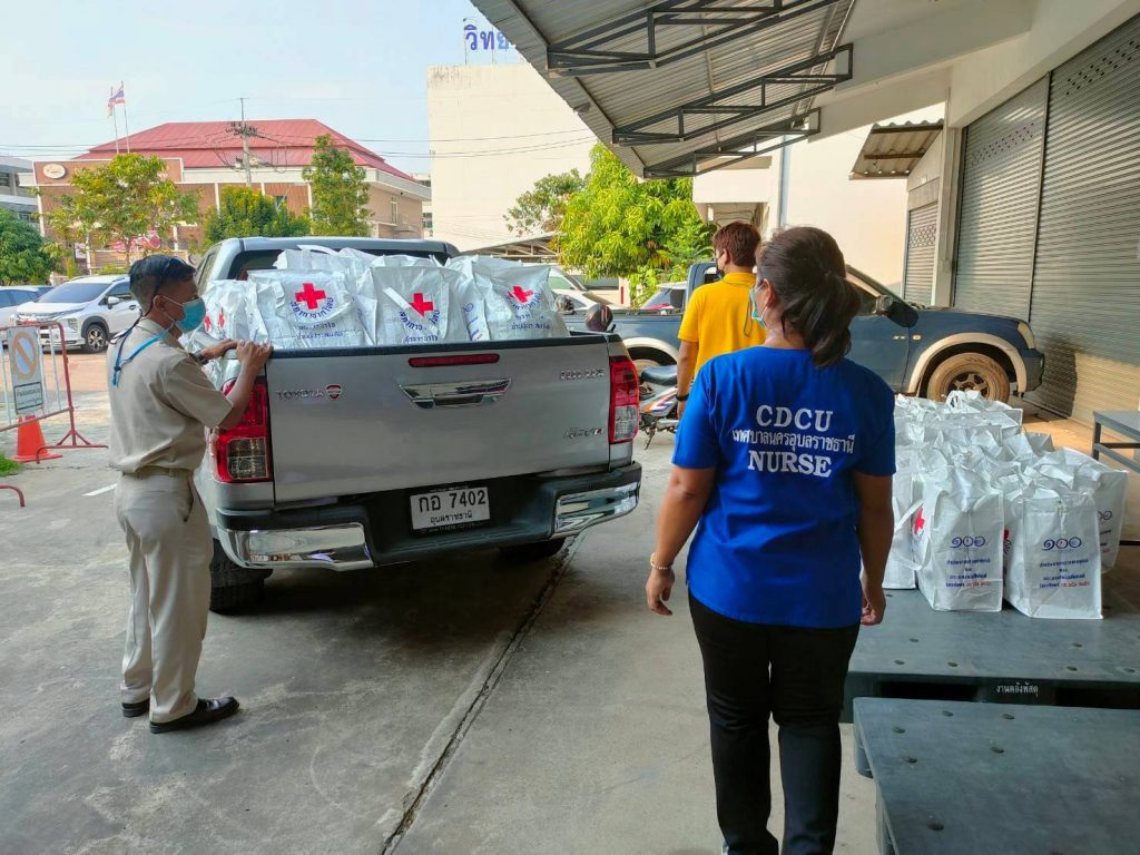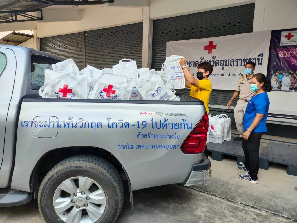 วันที่ 14 กุมภาพันธ์ 2565 นางศลิษา ภิรมย์รัตน์ นายกเหล่ากาชาดจังหวัดอุบลราชธานี มอบหมายเจ้าหน้าที่เหล่ากาชาดจังหวัดอุบลราชธานี เจ้าหน้าที่สถานีกาชาดที่ 7 จ.อุบลราชธานี มอบชุดธารน้ำใจกู้ชีวิตฝ่าวิกฤตโควิด-19 จำนวน 52 ชุด ให้กับเจ้าหน้าที่สำนักงานเทศบาลนครอุบลราชธานี จังหวัดอุบลราชธานี เพื่อนำไปมอบให้กับผู้กักกันตน 14 วัน ในพื้นที่เขตเทศบาลนครอุบลราชธานี จังหวัดอุบลราชธานี ซึ่งได้รับผลกระทบจากการแพร่ระบาดของโรคโควิด-19 และเป็นผู้ที่มีความเสี่ยงสูง ทั้ง 52 คน ในลำดับต่อไป โดยอาสาสมัครสาธารณสุขประจำหมู่บ้าน (อสม.) คีย์ข้อมูลคำร้อง ขอความช่วยเหลือผ่านระบบ Application “พ้นภัย”