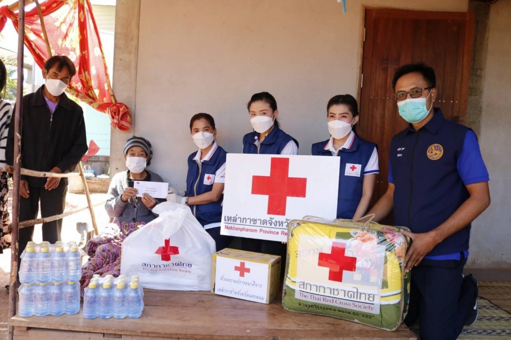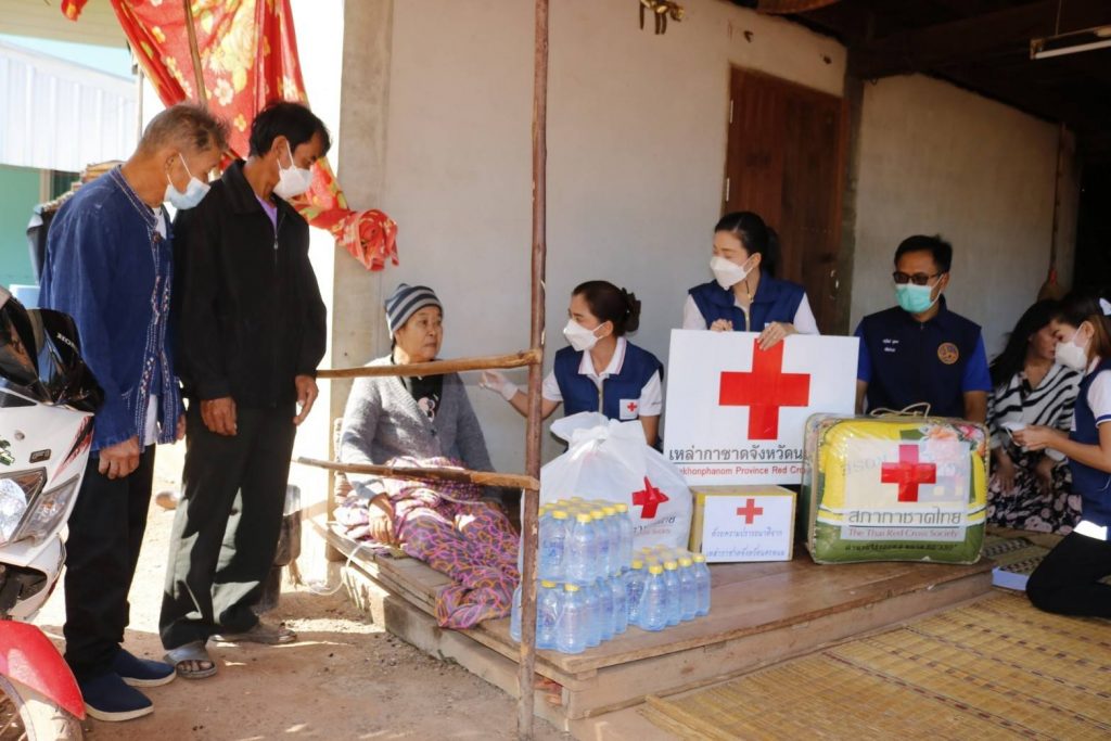 รองนายกเหล่ากาชาดจังหวัดนครพนม พร้อมด้วยคณะกรรมการและเจ้าหน้าที่เหล่ากาชาดจังหวัดนครพนม บูรณาการการทำงานร่วมกับอำเภอศรีสงคราม ลงพื้นที่เยี่ยมและมอบเงินช่วยเหลือราษฎรผู้ยากไร้ รายที่ 37 ตามกิจกรรม ” วันกาชาด บรรเทาทุกข์ บำรุงสุข ประชา ” ปีงบประมาณ พ.ศ.2565 แก่นางอุ่น เรือนนา อายุ 62 ปี บ้านเลขที่ 61 หมู่ที่ 6 ตำบลบ้านเอื้อง อำเภอศรีสงคราม จังหวัดนครพนม ครอบครัวมีฐานะยากจน พิการทางการได้ยิน ตาซ้ายมองไม่เห็นและไม่สามารถรักษาได้ เหล่ากาชาดจังหวัดนครพนม มอบเงินช่วยเหลือ จำนวน 2,000 บาท พร้อมเครื่องอุปโภคบริโภคเสื้อผ้า มูลค่า 2,500 บาท