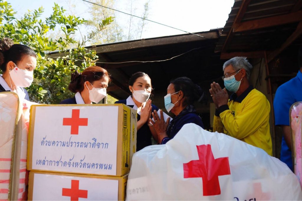 วันที่ 25 กุมภาพันธ์ 2565 นางกาญจนี รุจนเสรี นายกเหล่ากาชาดจังหวัดนครพนม พร้อมด้วยนางศุทธิกานต์ วงศ์สถิตจิรกาล รองนายกเหล่ากาชาดจังหวัดนครพนม และคณะกรรมการเหล่ากาชาดจังหวัดนครพนม ลงพื้นที่ให้กำลังใจและให้ความช่วยเหลือ แก่ครอบครัวนายงนางคิดสวรรค์ แสงมณี ราษฎรผู้ประสบอัคคีภัย ณ บ้านเลขที่ 127 หมู่ที่ 10 ตำบลโคกหินแฮ่ อำเภอเรณูนคร จังหวัดนครพนม ซึ่งเหล่ากาชาดจังหวัดนครพนมได้ มอบเงินช่วยเหลือจำนวน 8,000 บาท พร้อมด้วยเครื่องอุปโภคบริโภค และเครื่องใช้จำเป็นต่อการดำรงชีพ มูลค่า 2,000 บาท