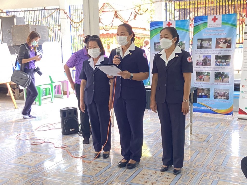 วันอังคารที่ 8 มีนาคม 2565 นางดนิตา สมจิตต์ นายกเหล่ากาชาดจังหวัดร้อยเอ็ด มอบหมายให้นางจินตนา ชัชวาลวงศ์ รองนายกเหล่ากาชาดจังหวัดร้อยเอ็ด พร้อมด้วยคณะกรรมการเหล่ากาชาดจังหวัดร้อยเอ็ด เป็นประธานในพิธีเปิด และร่วมเป็นวิทยากร ในการอบรมเชิงปฏิบัติการหลักสูตร “แกนนำชุมชนพร้อมรับภัยพิบัติ”โครงการเสริมสร้างศักยภาพด้านการลดความเสี่ยงจากภัยพิบัติ (BHA) กิจกรรมชุมชนพร้อมรับภัยพิบัติ และบรรยายพิเศษในหัวข้อ “ความรู้เกี่ยวกับสภากาชาดไทย และบทบาทของเหล่ากาชาดจังหวัด ที่เกี่ยวข้องกับงานด้านภัยพิบัติ” ณ วัดศิริมงคลวลาราม ตำบลพลับพลา อำเภอเชียงขวัญ จังหวัดร้อยเอ็ด