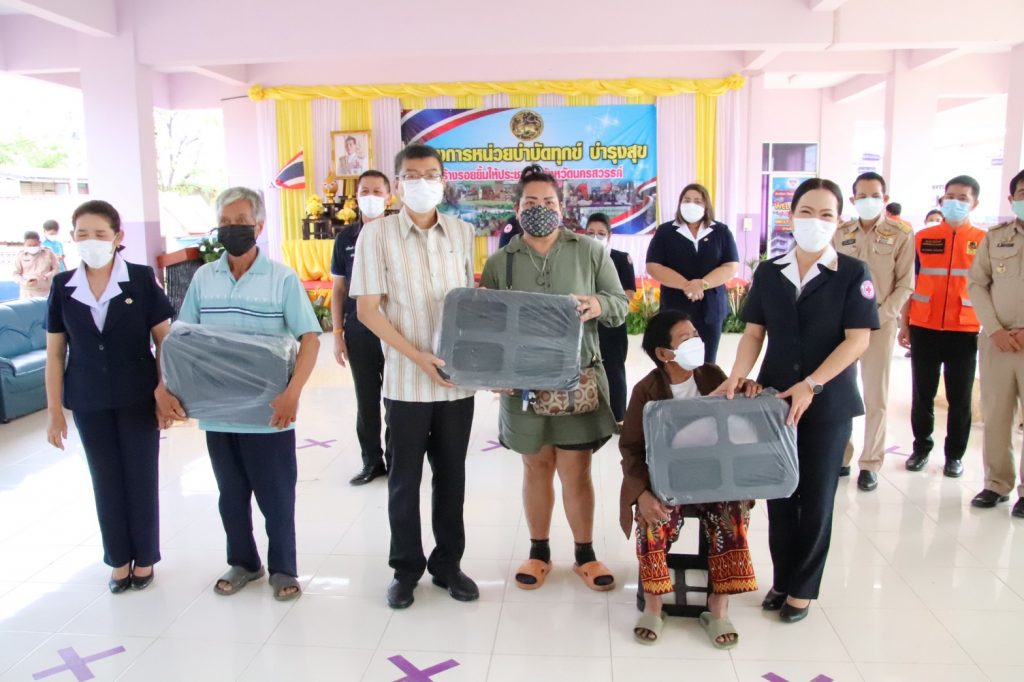 วันที่ 24 มีนาคม 2565 ทันตแพทย์หญิงศิริรัตน์ ศิริมาศ นายกเหล่ากาชาดจังหวัดนครสวรรค์ พร้อมด้วยนางวิยดา พลับน้อย รองนายกเหล่ากาชาดจังหวัดนครสวรรค์ คณะกรรมการและสมาชิกเหล่ากาชาดจังหวัดนครสวรรค์ ร่วมโครงการหน่วยบำบัดทุกข์ บำรุงสุข สร้างรอยยิ้มให้กับประชาชนจังหวัดนครสวรรค์ โดยมีนายชยันต์ ศิริมาศ ผู้ว่าราชการจังหวัดนครสวรรค์ เป็นประธานฯ ซึ่งดำเนินกิจกรรมพบปะประชาชน มอบเงินสงเคราะห์แก่นักเรียนยากจนจำนวน 20 ราย มอบเงินสงเคราะห์ผู้ยากไร้และผู้ไร้ที่พึ่ง จำนวน 20 ราย ในการนี้เหล่ากาชาดจังหวัดนครสวรรค์ได้มอบเครื่องอุปโภค บริโภค ให้แก่ผู้สูงอายุ ผู้พิการ และผู้มีฐานะยากไร้ จำนวน 50 ชุด มอบเก้าอี้สุขาสำหรับผู้พิการและผู้สูงอายุ จำนวน 20 ชุด และได้ร่วมให้กำลังใจประชาชนที่เข้ารับการฉีดวัคซีนโควิด-19 จากนั้นได้เดินเยี่ยมชมหน่วยงานต่างๆ ที่ออกให้บริการประชาชน และร่วมกันปลูกผักสวนครัว ปล่อยปลา ณ โรงเรียนอนุบาลแม่เปิน ตำบลแม่เปิน อำเภอแม่เปิน จังหวัดนครสวรรค์