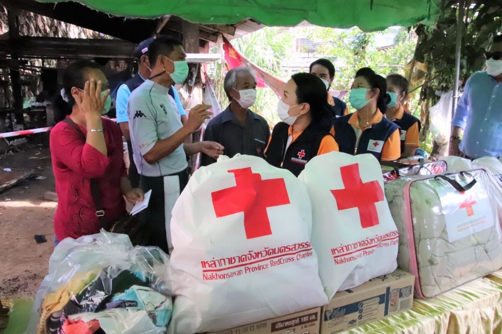 เหล่ากาชาดจังหวัดนครสวรรค์ นางวิยดา พลับน้อย รองนายกเหล่ากาชาดจังหวัดนครสวรรค์ คณะกรรมการและสมาชิกเหล่ากาชาดจังหวัดนครสวรรค์ ลงพื้นที่ร่วมกับสำนักงานป้องกันและบรรเทาสาธารณภัยจังหวัดฯ พัฒนาสังคมและความมั่นคงของมนุษย์จังหวัดฯ หน่วยงานราชการส่วนท้องถิ่น และผู้ที่เกี่ยวข้อง เพื่อเยี่ยมให้กำลังใจครอบครัวผู้ประสบอัคคีภัย รายนางประทีป กลิ่นเกิด ณ บ้านเลขที่ 76 หมู่ที่ 9 ตำบลบ้านแก่ง อำเภอเมืองนครสวรรค์ ซึ่งเกิดเหตุเมื่อวันอังคารที่ 22 มีนาคม 2565 เวลา 07.00 น. โดยประมาณ ได้รับความเสียหายทั้งหลัง และมีผู้ได้รับบาดเจ็บ 1 ราย เหล่ากาชาดจังหวัดนครสวรรค์ จึงได้มอบเงินช่วยเหลือ จำนวน 10,000 บาท เครื่องอุปโภค – บริโภค น้ำดื่ม และผ้าห่มนวม อย่างละ 3 ชุด รวมทั้งผลิตภัณฑ์ดัชมิลล์ ยูเอชทีจำนวน 2 ลัง จากเหตุการณ์เดียวกันนี้ทำให้ลุกไฟลามไปยังบ้านเรือนของนางศิวภรณ์ นิสาทร ณ บ้านเลขที่ 25 หมู่ที่ 9 ตำบลบ้านแก่ง อำเภอเมืองนครสวรรค์ ทำให้เกิดความเสียหายบางส่วน เหล่ากาชาดจังหวัดฯ จึงได้มอบเงินช่วยเหลือ 3,000 บาท เครื่องอุปโภค บริโภค ผ้าห่มนวม น้ำดื่ม และผลิตภัณฑ์ดัชมิลล์ ยูเอชที อย่างละ 2 ชุด ทั้งนี้ เพื่อเป็นการบรรเทาความเดือดร้อนในเบื้องต้น และให้กำลังใจในการดำเนินชีวิตต่อไป