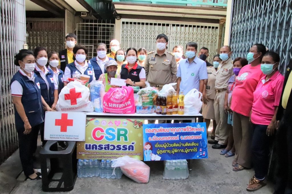 วันที่ 30 พฤษภาคม 2565 ทันตแพทย์หญิงศิริรัตน์ ศิริมาศ นายกเหล่ากาชาดจังหวัดนครสวรรค์ พร้อมด้วยคณะกรรมการและสมาชิกเหล่ากาชาดจังหวัดนครสวรรค์ ลงพื้นที่ร่วมกับว่าที่ ร.ต.ณรงค์ชัย จินดาพันธ์ นายอำเภอเมืองนครสวรรค์ เพื่อเยี่ยมให้กำลังใจ ผู้สูงอายุ ในเขตอำเภอเมืองนครสวรรค์ รายนางสมจิตร อยู่สวัสดิ์ อายุ 87 ปี(ตามบัตรประชาชน) อยู่บ้านเช่าเลขที่ 151/2 (ตรงวัดกบ) อ.เมืองนครสวรรค์ ซึ่งเดิมคุณยายมีอาชีพขายผัดไทย แต่ปัจจุบันได้เปลี่ยนมาขายส้มตำ โดยจะเข็นรถจากบ้านพักมาขายส้มตำตรงข้ามร้านแรงเลอร์ตลาดบ่อนไก่ ตั้งแต่เวลา ในการนี้ เหล่ากาชาดจังหวัดนครสวรรค์ ได้มอบเงินช่วยเหลือจำนวน 3,000 บาท เครื่องอุปโภค-บริโภค พร้อมน้ำดื่ม ผ้าห่มนวม 1 ชุด ผลิตภัณฑ์นมยูเอสที 2 ลัง และเก้าอี้สุขาสำหรับผู้สูงอายุ เพื่อเป็นการบรรเทาความเดือดร้อนในเบื้องต้น และให้กำลังใจในการดำรงค์ชีวิตต่อไปนอกจากนี้ ยังได้รับเงินช่วยเหลือและสิ่งของอุปโภคและบริโภค จาก อำเภอเมืองนครสวรรค์ พัฒนาสังคมและความมั่นคงของมนุษย์จังหวัดนครสวรรค์ กองทุนพัฒนาคุณภาพชีวิตอำเภอเมืองนครสวรรค์