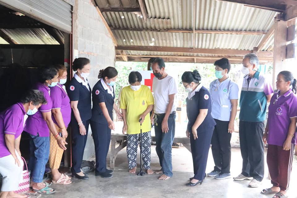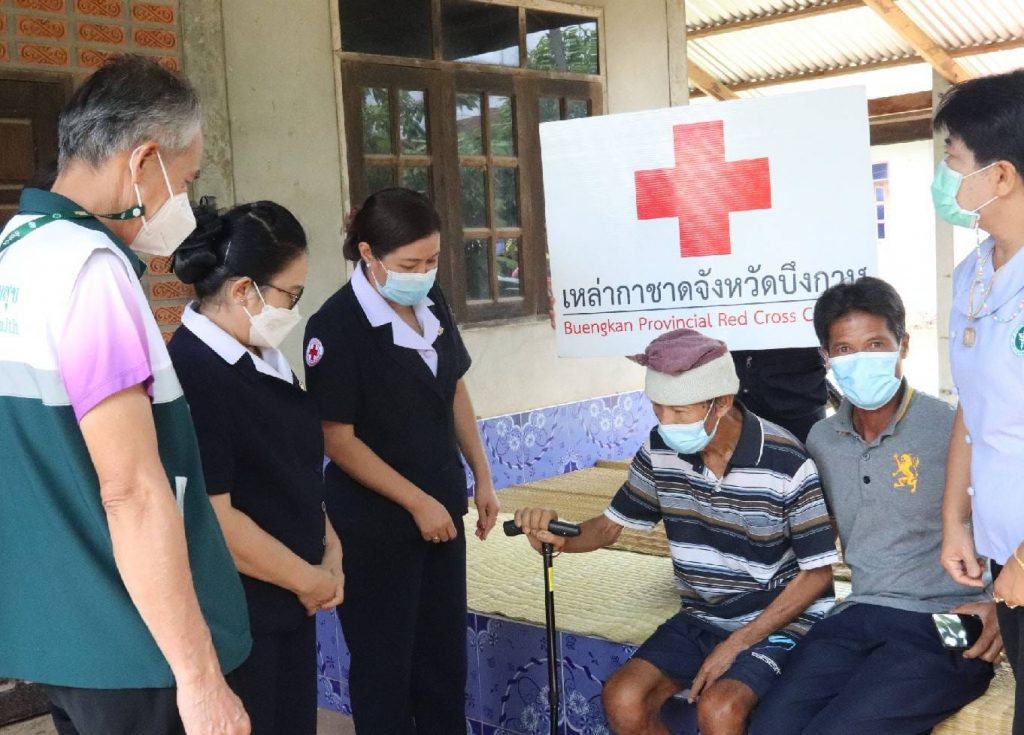 วันที่ 15 มิถุนายน 2565 นายสนิท ขาวสอาด ผู้ว่าราชการจังหวัดบึงกาฬ นายกเหล่ากาชาดจังหวัดบึงกาฬ/ มอบหมายให้นางวาทิณี โฆษาศิวิไลซ์ รองนายกเหล่ากาชาดจังหวัดบึงกาฬ นางเฉลิมศรี บุญมาก รองนายกเหล่ากาชาดจังหวัดบึงกาฬ นางคำหมุน ยอดเทพ รองนายกเหล่ากาชาดจังหวัดบึงกาฬ ร่วมด้วยคณะกรรมการและสมาชิกกิ่งกาชาดอำเภอบึงโขงหลง ปกครองอำเภอบึงโขงหลง พัฒนาสังคมและความมั่นคงของมนุษย์จังหวัดบึงกาฬ สาธารสุขอำเภอบึงโขงหลง โรงพยาบาลส่งเสริมสุขภาพประจำตำบล ลงพื้นที่มอบไม้เท้าเลเซอร์พระราชทานให้กับ