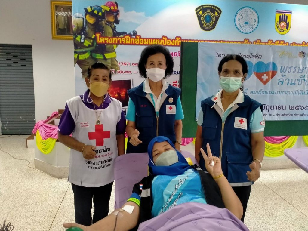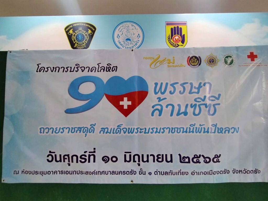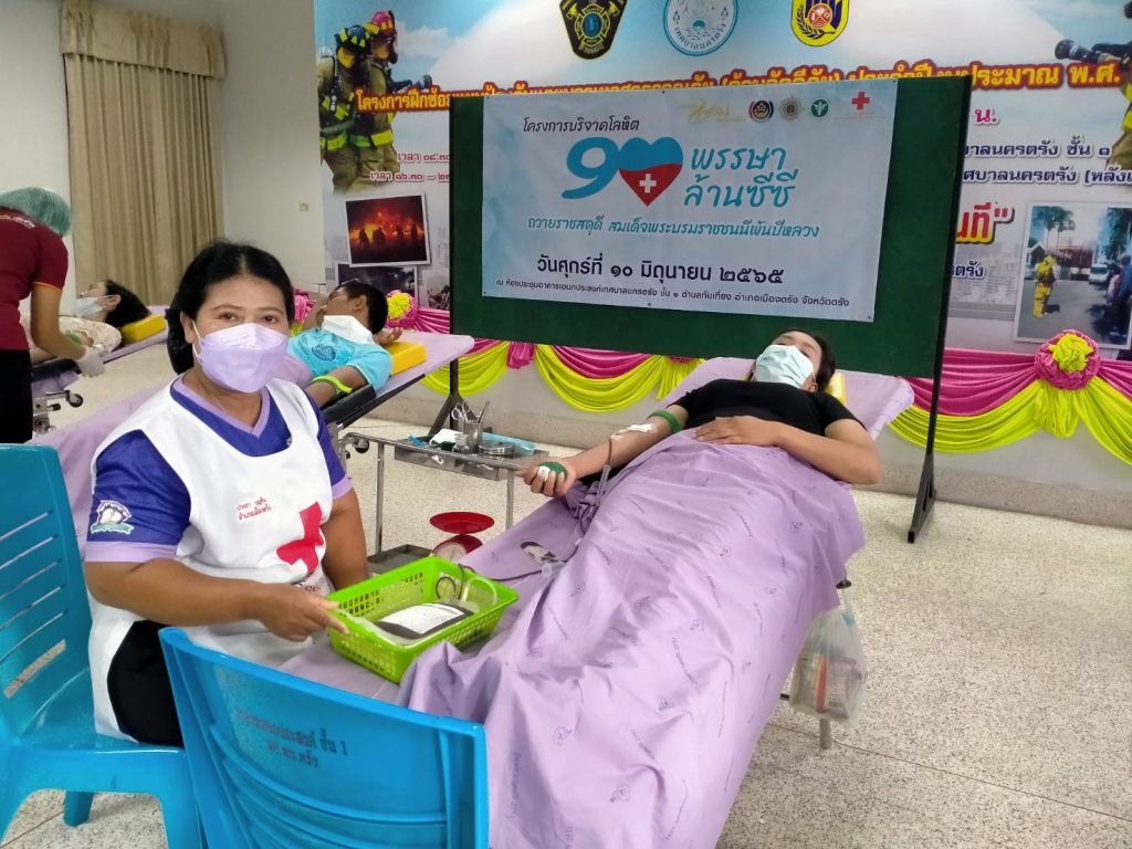 วันที่ 10 มิถุนายน 2565 นางละมัย เจริญโสภา นายกเหล่ากาชาดจังหวัดตรัง มอบหมายนางมินตรา อรทัย รองนายกเหล่ากาชาดจังหวัดตรังพร้อมด้วยคณะกรรมการเหล่ากาชาด สมาชิก เจ้าหน้าที่ และจิตอาสาสภาากาชาดไทย ร่วมกับธนาคารเลือดโรงพยาบาลตรัง ออกหน่วยรับบริจาคโลหิต ดวงตา และอวัยวะ ณ อาคารอเนกประสงค์เทศบาลนครตรัง โดยกองทุนแม่ของแผ่นดินจังหวัดตรัง มีผู้บริจาคทั้งหมด 57 ราย