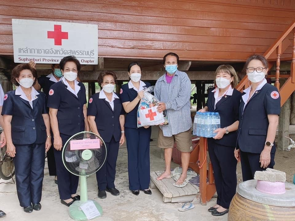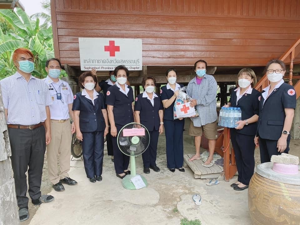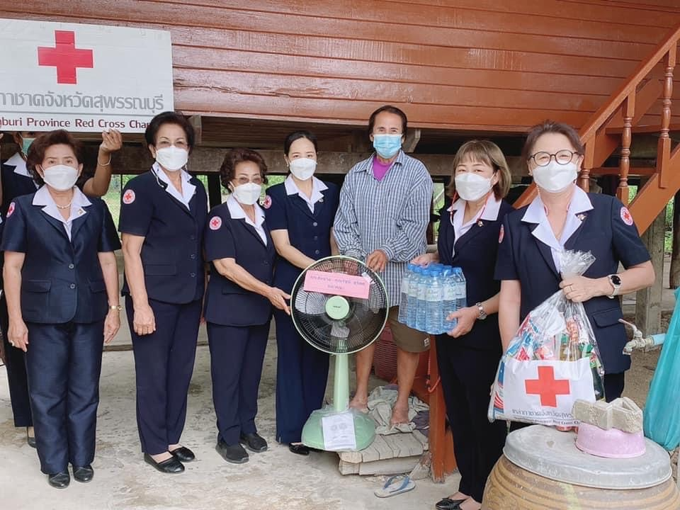วันที่ 3 พฤษภาคม 2565 นางนภัสสร สุวรรณประทีป นายกเหล่ากาชาดจังหวัดสุพรรณบุรี มอบหมายให้ นางฐิติพร ศิริโกศล ผู้ช่วยนายกเหล่ากาชาดจังหวัด พร้อมด้วยที่ปรึกษา กรรมการและสมาชิกเหล่ากาชาดจังหวัด ร่วมมอบบ้านให้ นางสาวแฉล้ม เพ็งหาจิตต์ ซึ่งเหล่ากาชาดจังหวัดได้สนับสนุนงบประมาณในการซ่อมแซมบ้าน จำนวน 20,000 บาท โดยเหล่ากาชาดจังหวัดสุพรรณบุรี มอบเครื่องอุปโภคบริโภค จำนวน 1 ชุด น้ำดื่มขนาด 600 มิลลิลิตร จำนวน 1 แพ็ค คุณรัชนี สุจิตต์ มอบพัดลม จำนวน 1 ตัว ณ บ้านเลขที่ 66 ม.1 ต.ดอนกำยาน อ.เมืองสุพรรณบุรี จ.สุพรรณบุรี