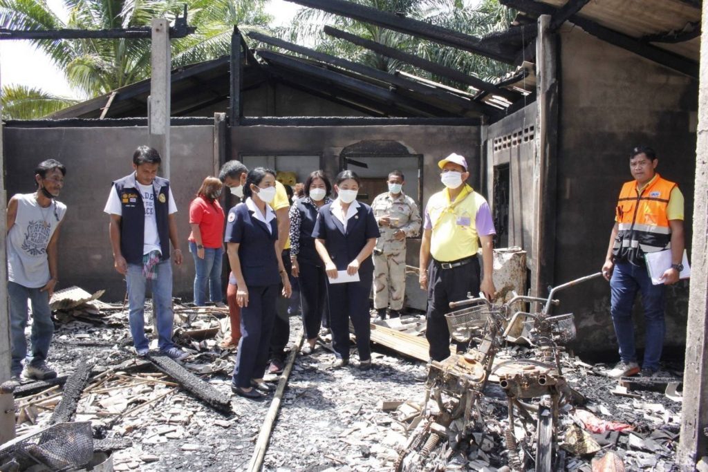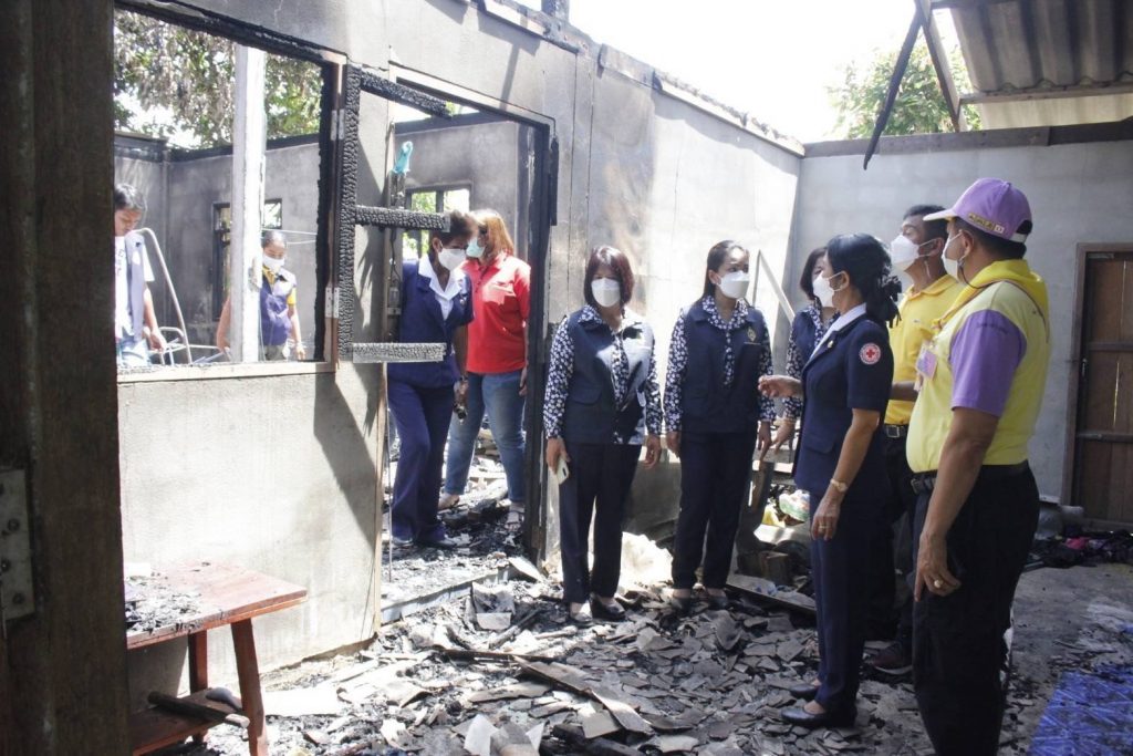 วันที่ 20 มิถุนายน 2565 นางอุรสา จินโต นายกเหล่ากาชาดจังหวัดสุราษฎร์ธานี ประธานแม่บ้านมหาดไทยจังหวัดสุราษฎร์ธานี มอบหมายให้นางราตรี รัตนสุภา รองนายกเหล่ากาชาดจังหวัดสุราษฎร์ธานี/รองประธานแม่บ้านมหาดไทยจังหวัดสุราษฎร์ธานี พร้อมด้วยคณะกรรมการเหล่ากาชาดจังหวัดสุราษฎร์ธานี สมาชิกเหล่ากาชาดจังหวัดสุราษฎร์ธานี และสมาชิกชมรมแม่บ้านมหาดไทยจังหวัดสุราษฎร์ธานี ร่วมลงพื้นที่เยี่ยมและให้กำลังใจครอบครัว นายสาจิต พัฒน์ชู อายุ 59 ปี บ้านเลขที่ 95 หมู่ที่ 14 ตำบลท่าขนอน อำเภอคีรีรัฐนิคม จังหวัดสุราษฎร์ธานีเนื่องจาก เมื่อวันที่ 18 มิถุนายน 2565 เวลา 10:55 น. ได้เกิดเหตุเพลิงไหม้บ้านพักอาศัยของ นายสาจิตฯ ซึ่งเป็นบ้านเช่า โดยนายสาจิตฯ