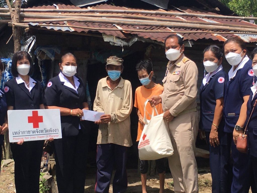 วันที่ 13 มิถุนายน 2565 นางวิภาดา ทิพญพงค์ธาดา นายกเหล่ากาชาดจังหวัดพังงา มอบหมายให้นางสายจิต ทิพย์มณี ภริยานายอำเภอท้ายเหมือง พร้อมด้วยกรรมการและสมาชิกเหล่ากาชาดจังหวัดพังงา นายสมศักดิ์ ทิพย์มณี นายอำเภอท้ายเหมือง ลงพื้นเยี่ยมนายแวน ชาญสมุทร์ อายุ 61 ปี อาศัยอยู่บ้านเลขที่ 44/5 หมู่ที่ 7 ตำบลทุ่งมะพร้าว อำเภอท้ายเหมือง จังหวัดพังงา โดยประสานความร่วมมือท้องที่ สอบถามข้อมูลเบื้องต้นเอกสารสิทธิ์ที่ดินเพื่อได้ให้ดูเเลเรื่องที่อยู่อาศัย โดยมีการบูรณาการร่วมกับท้องที่ท้องถิ่น เหล่ากาชาดจังหวัดพังงาเเละการระดมทุนจากภาคเอกชนขั้นตอนอยู่ในระหว่างการดำเนินการ ภายใต้ความร่วมมือจากหลายภาคส่วน เพื่อการพัฒนาคุณภาพชีวิตมิติด้านที่อยู่อาศัยเเละสิ่งเเวดล้อม การนี้ได้มอบเงินช่วยเหลือจำนวน 2,000 บาท พร้อมถุงยังชีพเพื่อเป็นขวัญกำลังใจ
