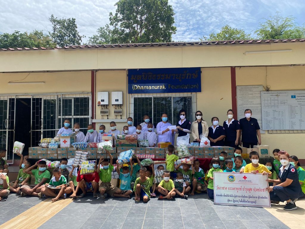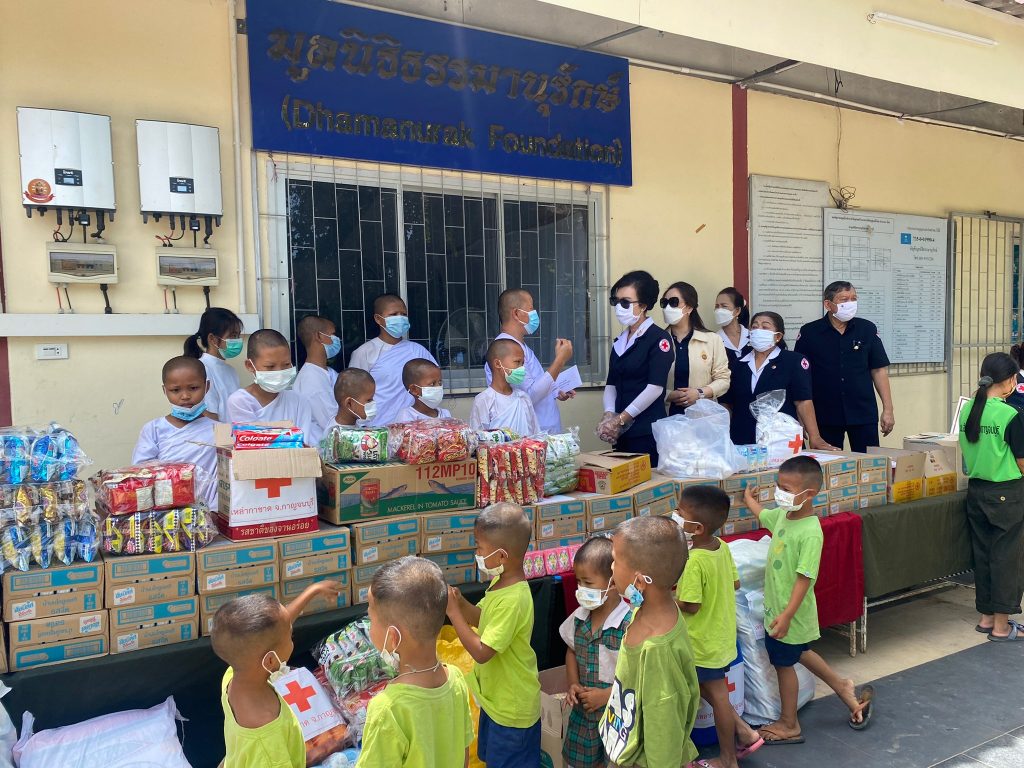 วันที่ 22 มิถุนายน 2565 นางรชยา ภูมิสวัสดิ์ นายกเหล่ากาชาดจังหวัดกาญจนบุรี นางสาวกิตติยา จึงรุ่งเจริญกิจ รองนายกเหล่ากาชาดจังหวัดกาญจนบุรี กรรมการ/ที่ปรึกษา/สมาชิกเหล่ากาชาดจังหวัดกาญจนบุรี ได้ร่วมกันลงพื้นที่ตรวจเยี่ยมมอบเครื่องอุปโภค – บริโภค ให้แก่มูลนิธิเด็กธรรมมานุรักษ์ และโรงเรียนหมู่บ้านเด็ก ตำบลวังด้ง ตำบลช่องสะเดา อำเภอเมืองกาญจนบุรี จังหวัดกาญจนบุรี ซึ่งทั้ง 2 แห่ง เป็นสถานที่เลี้ยงดูเด็กที่ครอบครัวมีฐานะยากจนเป็นจำนวนมาก ขาดแคลนสิ่งของสำหรับอุปโภค – บริโภค และปัจจัยในการดำรงชีวิตของเด็ก เหล่ากาชาดจังหวัดกาญจนบุรี และแม่บ้านมหาดไทยจังหวัดกาญจนบุรี ได้มอบข้าวสาร 5 กก. 60 ถุง นมกล่อง 1,048 แพ็ค ยาสีฟัน 100 หลอด แปรงสีฟัน 100 อัน กระดาษทิชชู 20 แพ็ค ปลากระป๋อง 400 กระป๋อง สบู่ 100 แพ็ค ยาสระผม 80 ขวด ขนมอบกรอบ 480 ห่อ ขนมเจลลี่ 50 แพ็ค หน้ากากอนามัย 160 กล่อง แจลแอลกอฮอล์ 200 หลอด ชุดยาสามัญ 80 ชุด และเงินสดสนับสนุนที่ละ 10,000 บาท เป็นเงิน 20,000 บาท