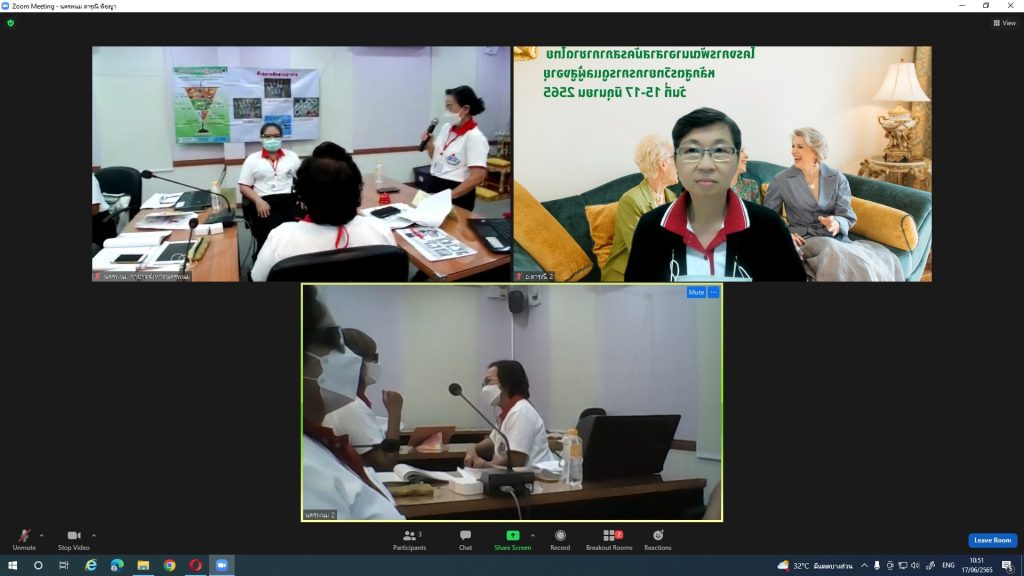 วันที่ 16 มิถุนายน 2565 เวลา 08.30 -17.00 น. สำนักงานเหล่ากาชาดจังหวัดนครพนม เข้าร่วมโครงการอบรมพัฒนาอาสาสมัครสภากาชาดไทย “หลักสูตรการดูแลตนเองของผู้สูงอายุ” ประจำปี 2565 ผ่านระบบ Zoom Cloud meeting ณ ห้องประชุมพระญาศรีสัตตนาคราช สำนักงานเหล่ากาชาดจังหวัดนครพนม เป็นวันที่ 2 โดยศูนย์ฝึกอบรมปฐมพยาบาลและสุขภาพอนามัย จัดทำโครงการพัฒนาอาสาสมัครสภากาชาดไทย ใน “หลักสูตรการดูแลตนเองของผู้สูงอายุ” ประจำปี 2565 ขึ้น เพื่อเพิ่มศักยภาพ ความรู้และทักษะในการทำงานด้านผู้สูงอายุ ให้กับวิทยากรเครือข่ายประจำจังหวัด สามารถขยายผลความรู้ต่อไปยังกลุ่มเป้าหมายในพื้นที่ได้อย่างต่อเนื่อง และยั่งยืน ซึ่งเหล่ากาชาดจังหวัดนครพนม ได้รับความอนุเคราะห์อาสาสมัครวิทยากรเครือข่ายประจำจังหวัดนครพนม จากโรงพยาบาลนครพนม เทศบาลเมืองนครพนมและข้าราชการบำนาญพยาบาลวิชาชีพ เข้าร่วมอบรมโครงการพัฒนาอาสาสมัครสภากาชาดไทย ใน “หลักสูตรการดูแลตนเองของผู้สูงอายุ” ประจำปี 2565 และจะขยายผลความรู้ให้แก่กลุ่มเป้าหมายในพื้นที่จังหวัดนครพนมต่อไป