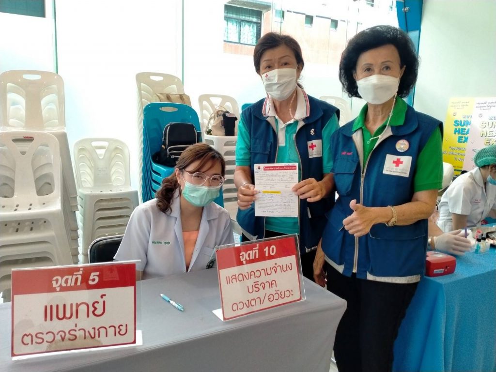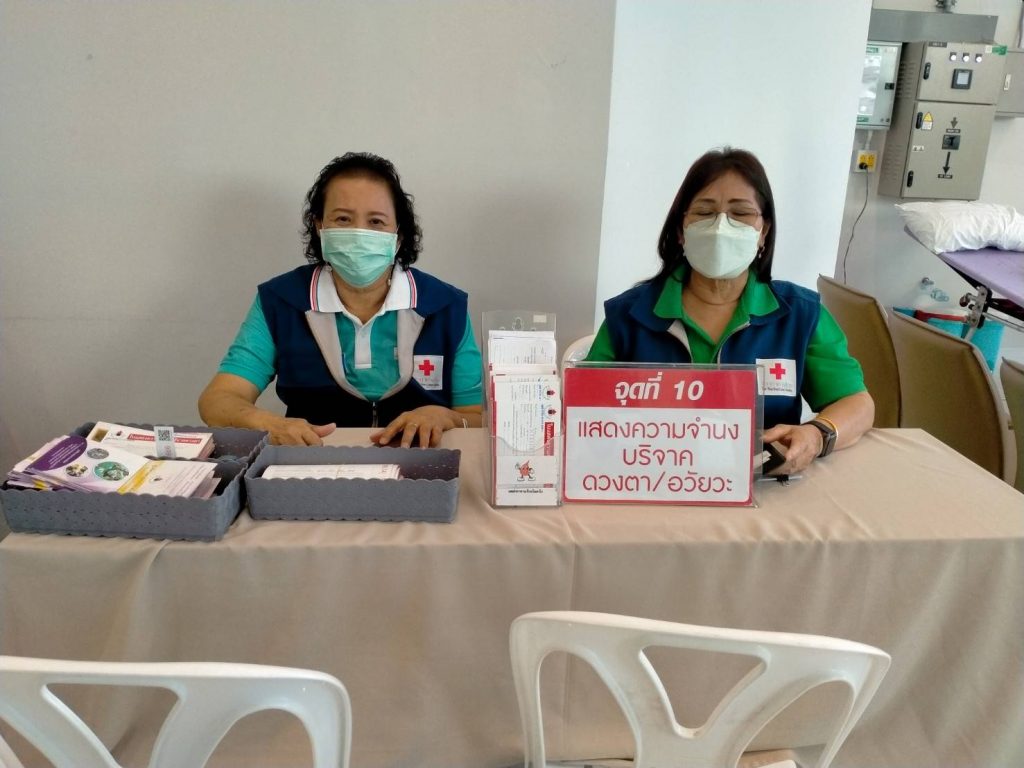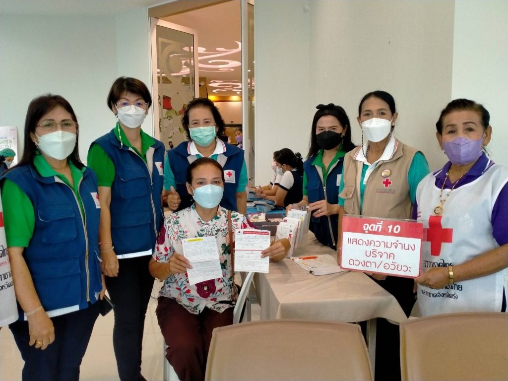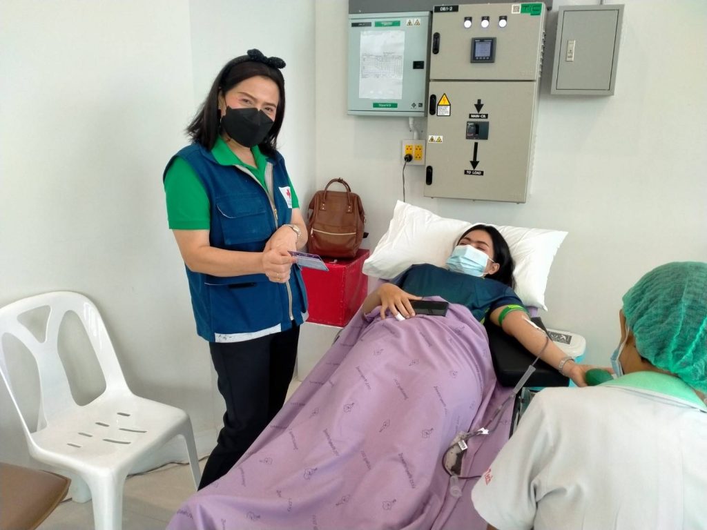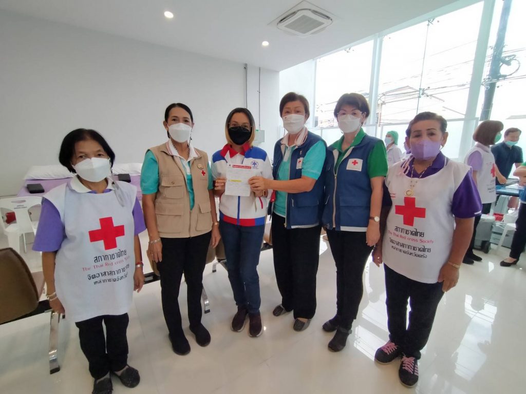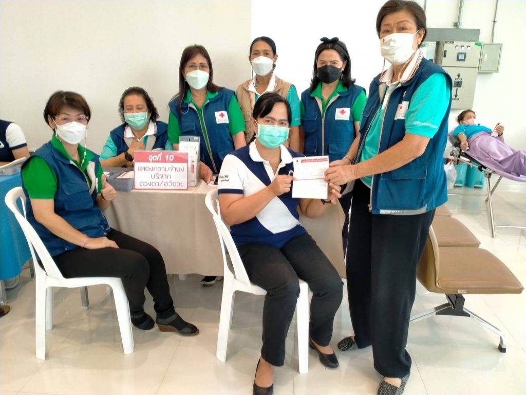วันที่ 22 มิถุนายน 2565 นางละมัย เจริญโสภา นายกเหล่ากาชาดจังหวัดตรัง มอบหมายนางมินตรา อรทัย รองนายกเหล่ากาชาดจังหวัดตรังพร้อมด้วยคณะกรรมการเหล่ากาชาด สมาชิก เจ้าหน้าที่ และจิตอาสาสภาากาชาดไทย ร่วมกับธนาคารเลือดโรงพยาบาลตรัง ออกหน่วยรับบริจาคโลหิต ดวงตา และอวัยวะ ณ โรงพยาบาลวัฒนแพทย์ตรัง ผู้บริจาคทั้งหมด 63 ราย ได้โลหิต 48 ยูนิต คิดเป็นปริมาณ 19,200 ซีซี. มีผู้แสดงความจำนงบริจาคดวงตา จำนวน 7 ราย และผู้แสดงความจำนงบริจาคอวัยวะ จำนวน 8 ราย พร้อมมอบหน้ากากอนามัยกับสายคล้องคอ 48 ชิ้น