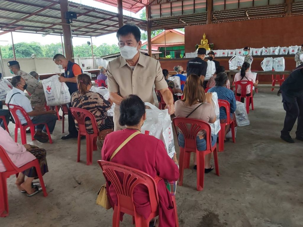 พร้อมมอบชุดธารน้ำใจช่วยเหลือราษฎรผู้ประสบอุทกภัย จำนวน 97 ชุด โดยได้รับการสนับสนุนชุดธารน้ำใจช่วยเหลือผู้ประสบภัย
