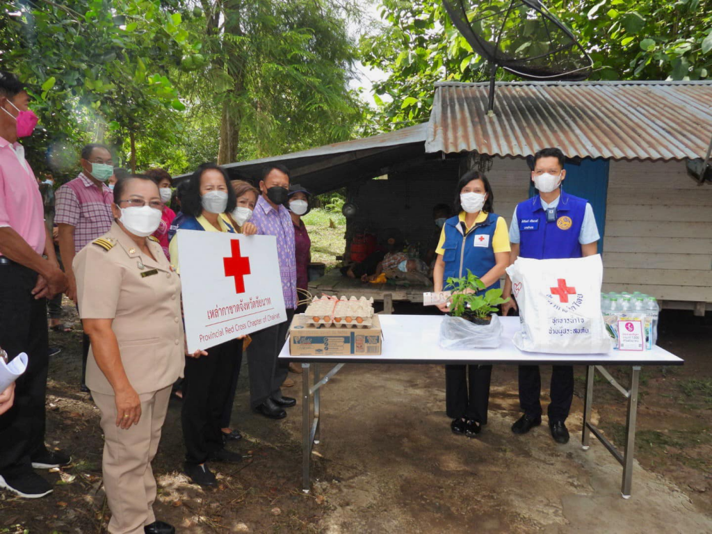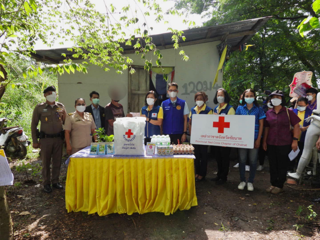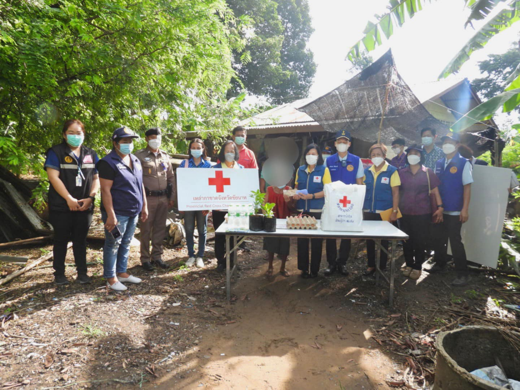 วันที่ 10 พฤษภาคม 2565 นาวาเอกหญิงอินทิรา ตันเจริญ นายกเหล่ากาชาดจังหวัดชัยนาท พร้อมด้วยคณะกรรมการและสมาชิกเหล่ากาชาดจังหวัดชัยนาท สำนักงานพัฒนาสังคมและความมั่นคงของมนุษย์จังหวัดชัยนาท นายอำเภอมโนรมย์ พัฒนาการอำเภอมโนรมย์ เกษตรอำเภอมโนรมย์ และผู้นำชุมชน ร่วมลงพื้นที่ตรวจเยี่ยมและให้กำลังใจกลุ่มเปราะบาง ผู้สูงอายุ ผู้พิการ ผู้ประสบปัญหาทางสังคม ฐานะยากจน จำนวน 7 ราย ในพื้นอำเภอมโนรมย์ จังหวัดชัยนาท พร้อมมอบถุงยังชีพ ไข่ไก่ นมพร้อมดื่ม แว่นสายตา เงินสด จำนวน 1,000 บาท และมอบพืชผักสวนครัว เช่น ต้นมะเขือขาว ต้นพริกจินดา โดยเกษตรอำเภอมโนรมย์ ร่วมมอบเมล็ดพันธุ์ผักหลายชนิด พร้อมทั้งแนะนำวิธีการเพาะปลูก/เหล่ากาชาดจังหวัดชัยนาท