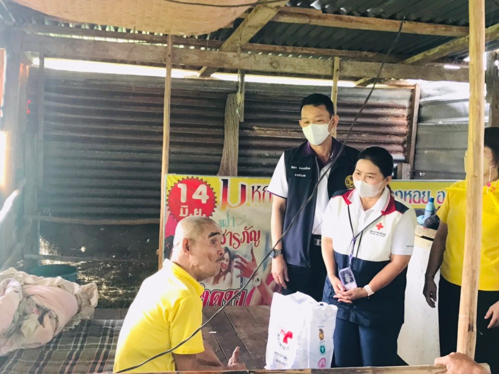 วันที่ 19 พฤษภาคม 2565 นางดนิตา สมจิตต์ นายกเหล่ากาชาดจังหวัดร้อยเอ็ด มอบหมายให้นายพัสกร ธนแสนไทย นายอำเภอหนองพอก และนางจิราภรณ์ ธนแสนไทย กรรมการเหล่ากาชาดจังหวัดร้อยเอ็ด พร้อมด้วย ผอ.รพ.สต. ปลัดอำเภอ ผู้บริหารองค์กรปกครองส่วนท้องถิ่น อสม. และสมาชิกจิตอาสา ลงพื้นที่ออกเยี่ยมให้กำลังใจประชาชนกลุ่มเปราะบาง (ผู้ป่วยติดบ้านติดเตียง ผู้สูงอายุ ผู้ด้อยโอกาส) ที่ปักหมุดในแอพพิเคชั่นพ้นภัยในพื้นที่ตำบลบึงงาม จำนวน 60 ราย และตำบลภูเขาทอง จำนวน 20 ราย โดยมอบถุงธารน้ำใจ สภากาชาดไทย เพื่อบรรเทาความเดือดร้อนและสร้างขวัญกำลังใจแก่ผู้ประสบอัคคีภัย