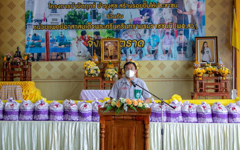 วันอังคารที่ 24 พฤษภาคม 2565 นางชุลีพร เตรัตน์ นายกเหล่ากาชาดจังหวัดตราด พร้อมด้วย นางฐิติวรดา เทพเสนา รองนายกเหล่ากาชาดจังหวัดตราด นางสาวปุณิกา เชี่ยวชาญชูโชติ เหรัญญิกเหล่ากาชาดจังหวัดตราด ผู้ช่วยนายกเหล่ากาชาดจังหวัดตราด คณะกรรมการ และสมาชิกเหล่ากาชาดจังหวัดตราด รองนายกกิ่งกาชาดอำเภอคลองใหญ่ คณะกรรมการ และสมาชิกกิ่งกาชาดอำเภอคลองใหญ่ เข้าร่วมโครงการบำบัดทุกข์ บำรุงสุข สร้างรอยยิ้ม ให้กับประชาชน ร่วมกับหน่วยแพทย์เคลื่อนที่ พอ.สว. ณ ศาลาเฉลิมพระเกียรติ 80 พรรษา บ้านคลองมะขาม หมู่ที่ 1 ตำบลหาดเล็ก อำเภอคลองใหญ่ จังหวัดตราด โดยมี นายชำนาญวิทย์ เตรัตน์ ผู้ว่าราชการจังหวัดตราด เป็นประธานฯ ซึ่งมีหน่วยงานราชการในระดับจังหวัด ออกให้บริการประชาชนในพื้นที่ เพื่อช่วยลดรายจ่ายในการเดินทางเข้ารับบริการภาครัฐและแก้ไขปัญหาได้อย่างเป็นรูปธรรม รวมทั้งมีการจัดหน่วยแพทย์ พอ.สว. ให้บริการประชาชน ทั้งการตรวจสุขภาพ ตรวจรักษาโรค การจัดหน่วยทันตกรรมเคลื่อนที่ การฉีดวัคซีนป้องกันโควิด -19 การมอบทุนการศึกษาให้กับเยาวชน และการมอบเบี้ยยังชีพในการนี้ นายกเหล่ากาชาดจังหวัดตราด ได้ปลูกต้นรวงผึ้ง จำนวน 1 ต้น ณ ศูนย์พัฒนาเด็กเล็กเทศบาลตำบลหาดเล็ก และเหล่ากาชาดจังหวัดตราด ได้สนับสนุนถุงยังชีพและน้ำดื่ม จำนวน 50 ชุด เพื่อมอบให้กับผู้ยากไร้ที่เข้าร่วมโครงการฯ