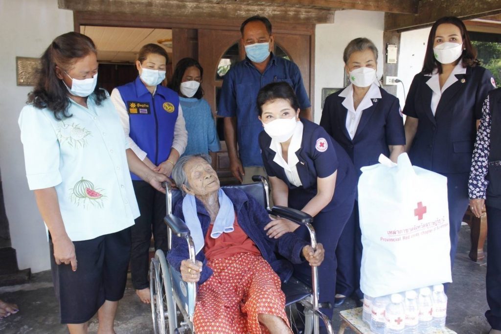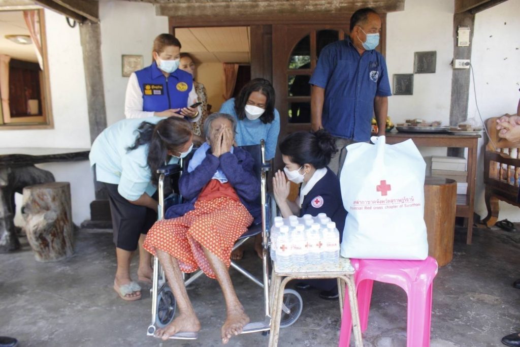 พร้อมด้วยคณะกรรมการเหล่ากาชาดจังหวัดสุราษฎร์ธานี สมาชิกเหล่ากาชาดจังหวัดสุราษฎร์ธานี และสมาชิกชมรมแม่บ้านมหาดไทยจังหวัดสุราษฎร์ธานี ร่วมลงพื้นที่เยี่ยมผู้สูงอายุที่มีอายุเกิน 100 ปีขึ้นไป ในราย นางเลี่ยน ชุมศรี อายุ 102 ปี บ้านเลขที่ 17 หมู่ที่ 7 ตำบลบ้านนา